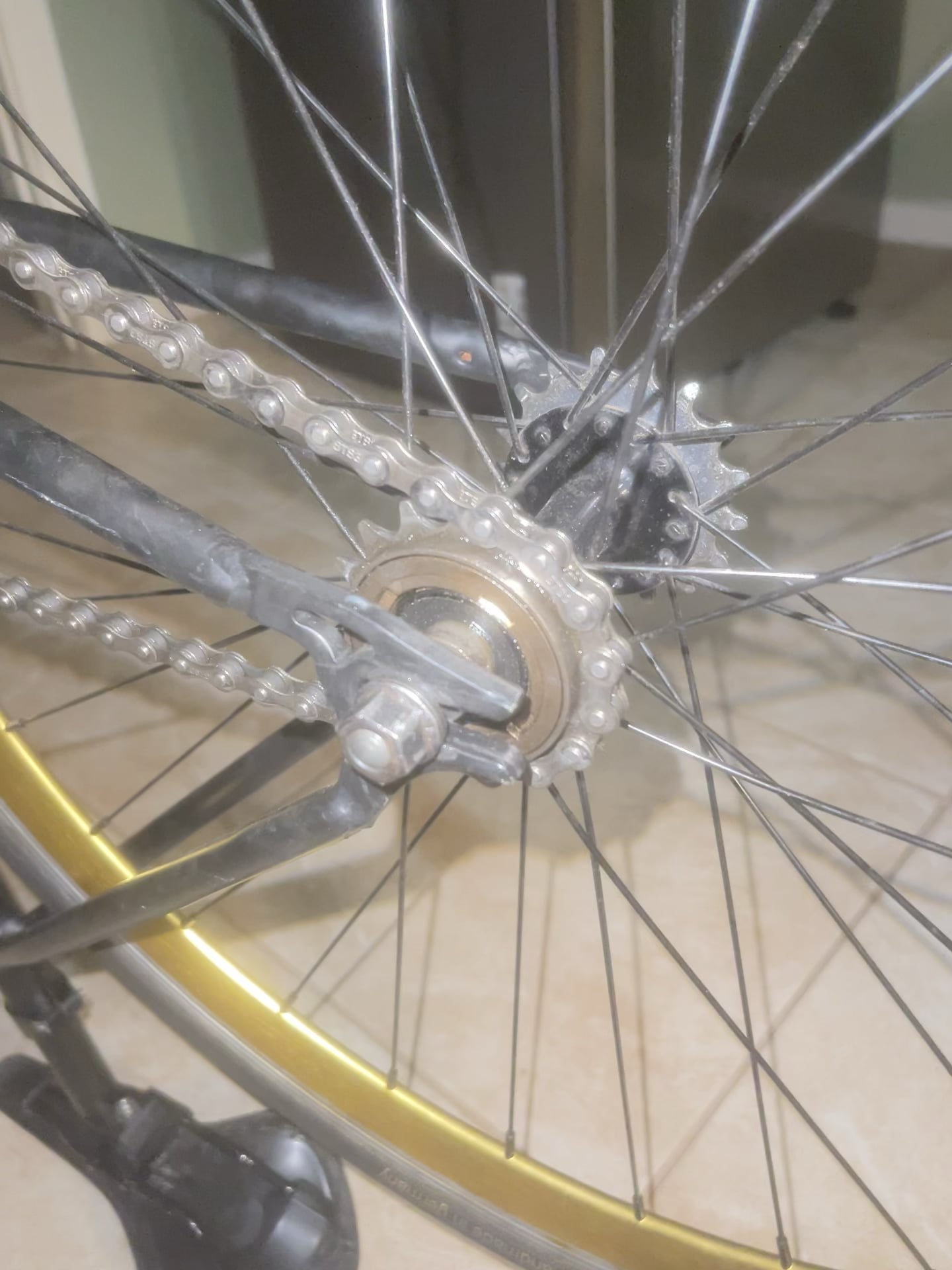 Ive been having problems with this back wheel for a while now and i cant seem to find the root. The crank and chain just feel like they’re cracking and crashing together and it makes this horrible sound and feeling while i pedal. Ive taken it to a bike shop and they just adjust the tension on my chain and even after that that sound and feeling of the chain about to snap are still there. Need help please