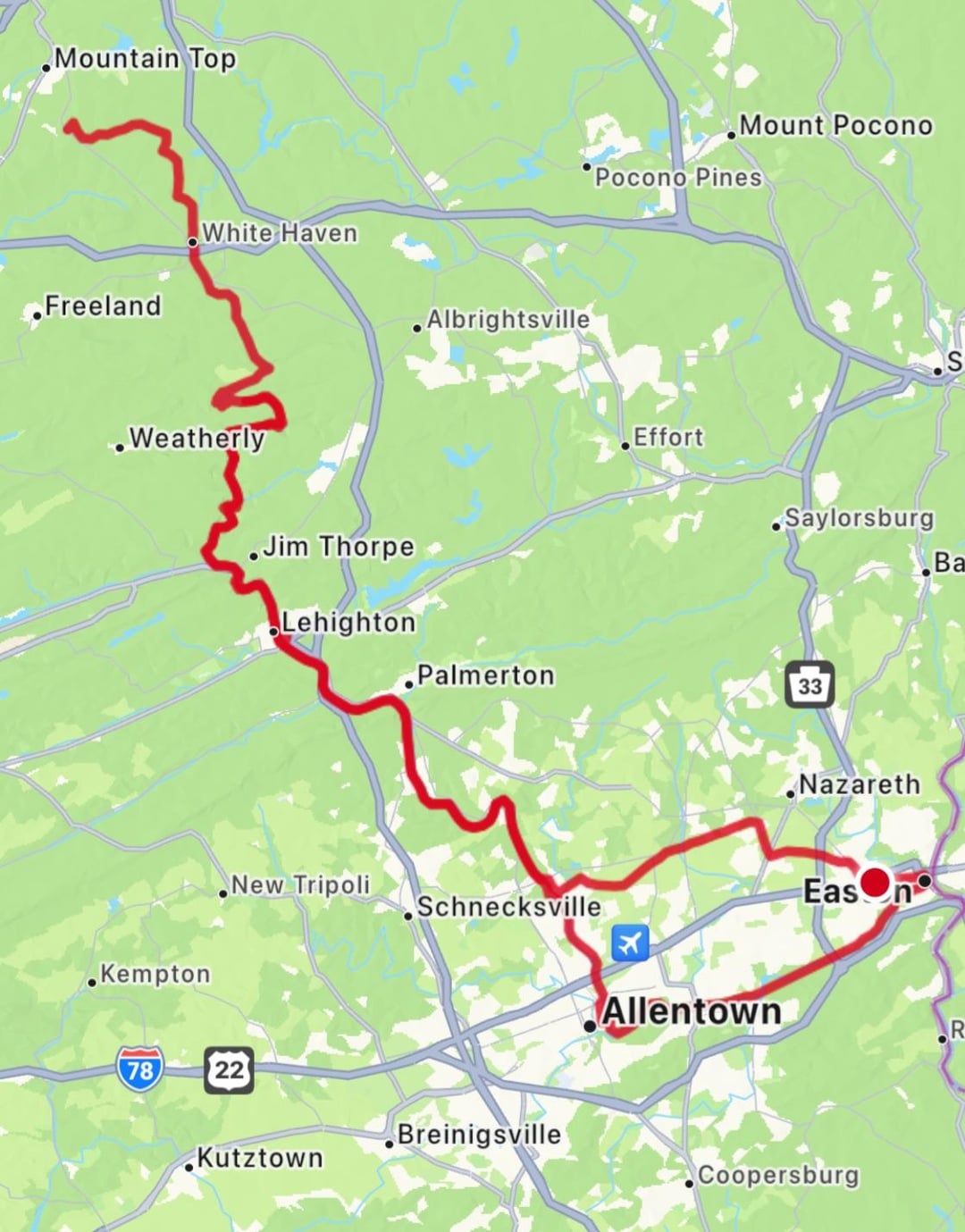 Most miles I’ve logged in a day so far. 11,247 feet of elevation (never quite sure how accurate that is with the app) and 13 hours to complete. 13 hours included time spent off the bike stopping for a couple coffees along the route, and a beer a few miles from home. Started off at 4:50am and was home before dark. The majority of the ride was on gravel, the D&L trail. There are a few areas that are closed/incomplete to navigate but overall a good time.