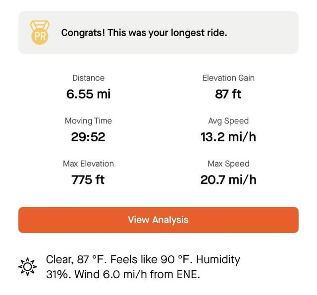 I started riding last week for the first time. Just easing into it. I don’t have any goals but I am tracking it via a free trial from Strava.