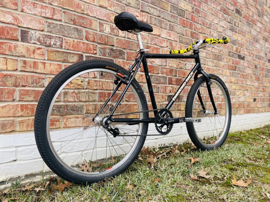 Facebook Twitter LinkedIn Pinterest Bluesky Threads Diamondback Ascent with mustache bars and Guidonnet levers. I dig the look and it’s fun, but way too small for me by joe-vee-wan Bicycle Bike Fixed Gear Fixed Gear Bicycle Fixed Gear Bike Single Speed Cycles