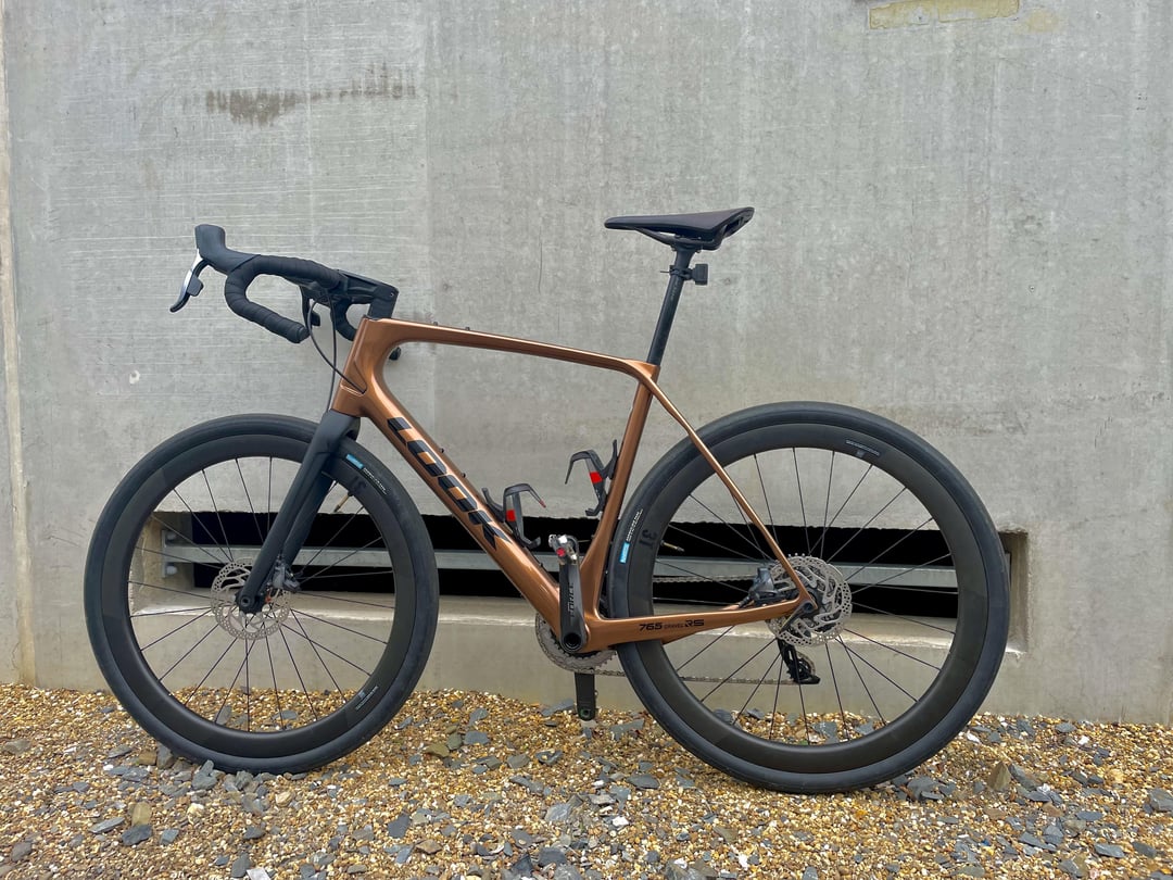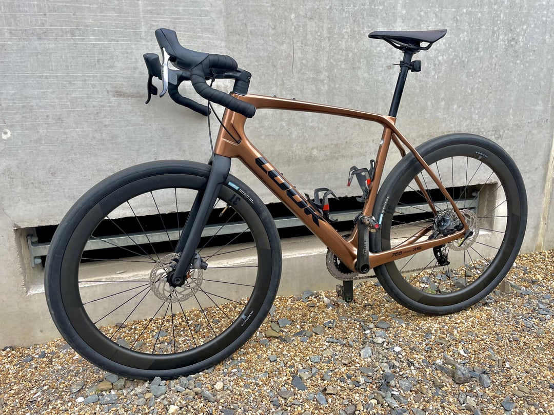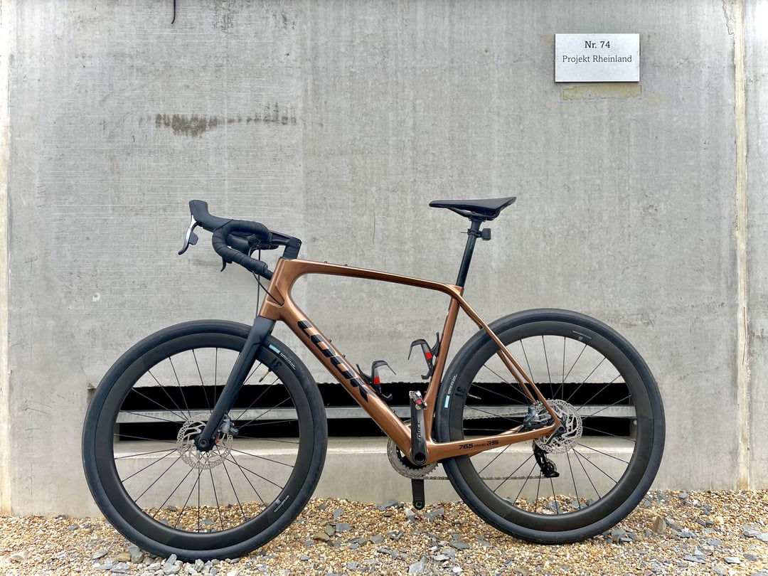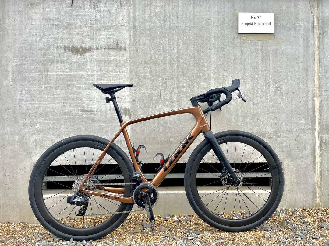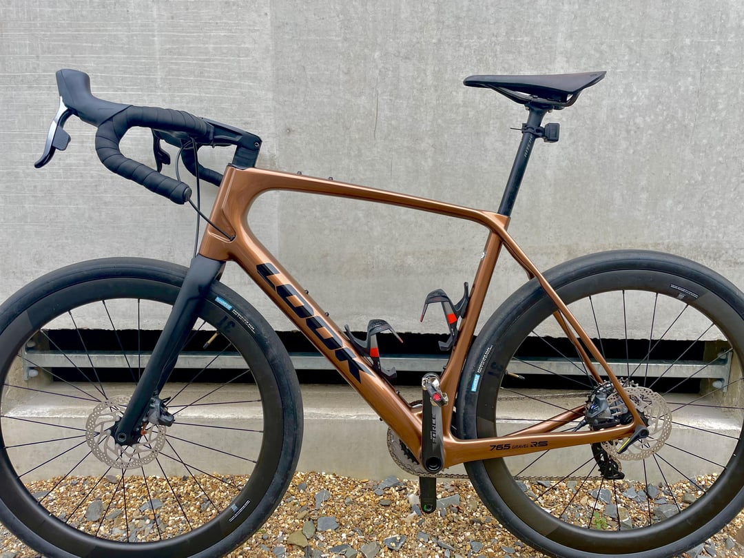 Fresh from the paint shop: Look 765 Gravel RS with complete SRAM Force AXS wide 2×12, 3T Discus C45 Stealth carbon wheelset, Brooks C13 Carbon saddle and Rene Herse Snoqualmie Pass tires.