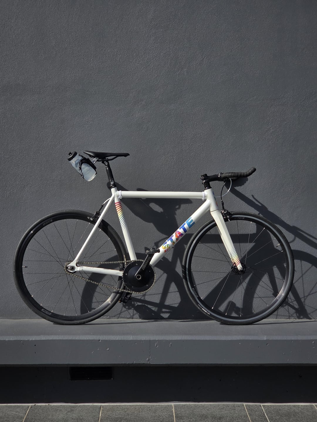 Facebook Twitter LinkedIn Pinterest Bluesky Threads Picked up this sweet State Undefeated in Nov for $420AUD (about $260USD) off marketplace in fixie form and have since converted it to SS with dual brakes for more comfortable day to day riding 😊 love this thing!! by Pondside_Ponderer Bicycle Bike Fixed Gear Fixed Gear Bicycle Fixed Gear Bike Single Speed Cycles