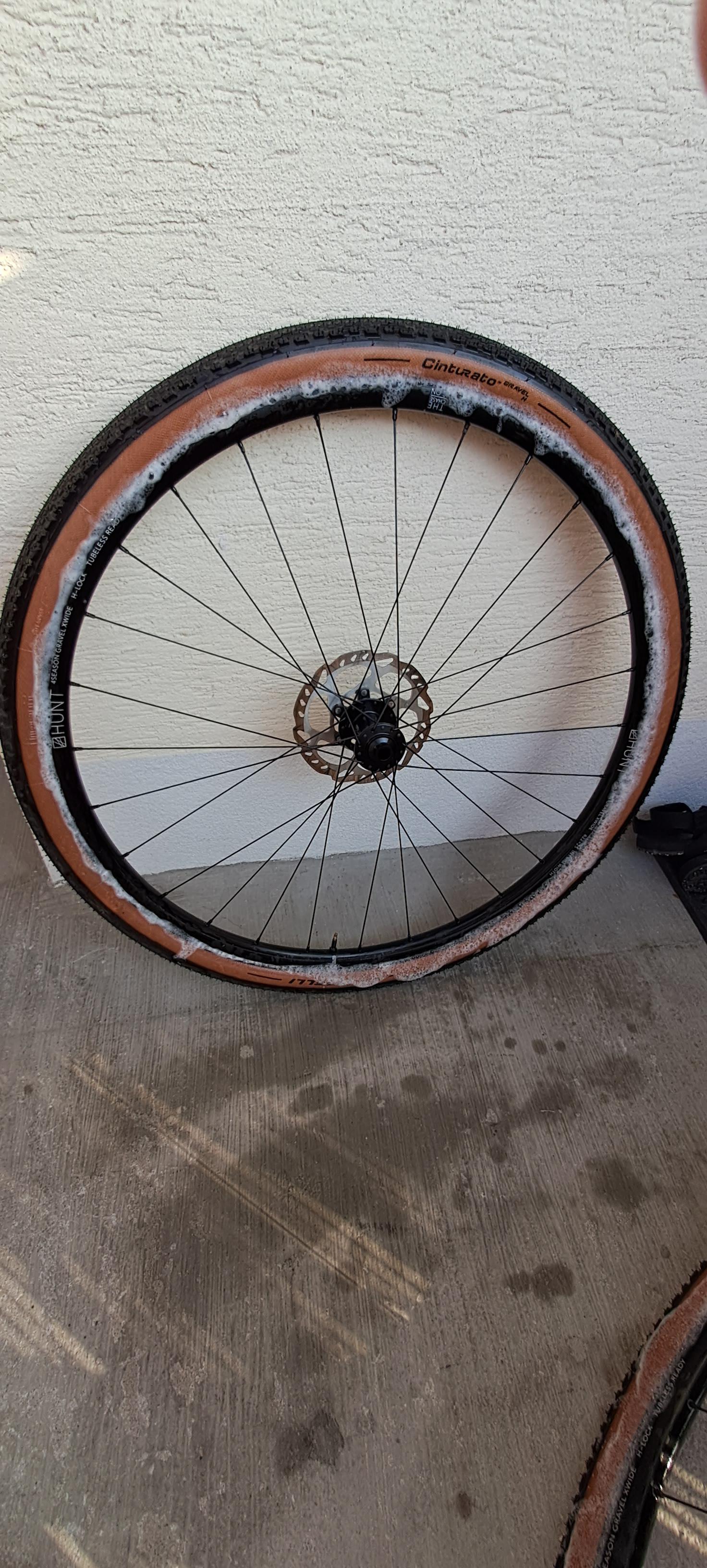 Muc-off sealant was added (100ml per wheel as recommended on the bottle for 700c)