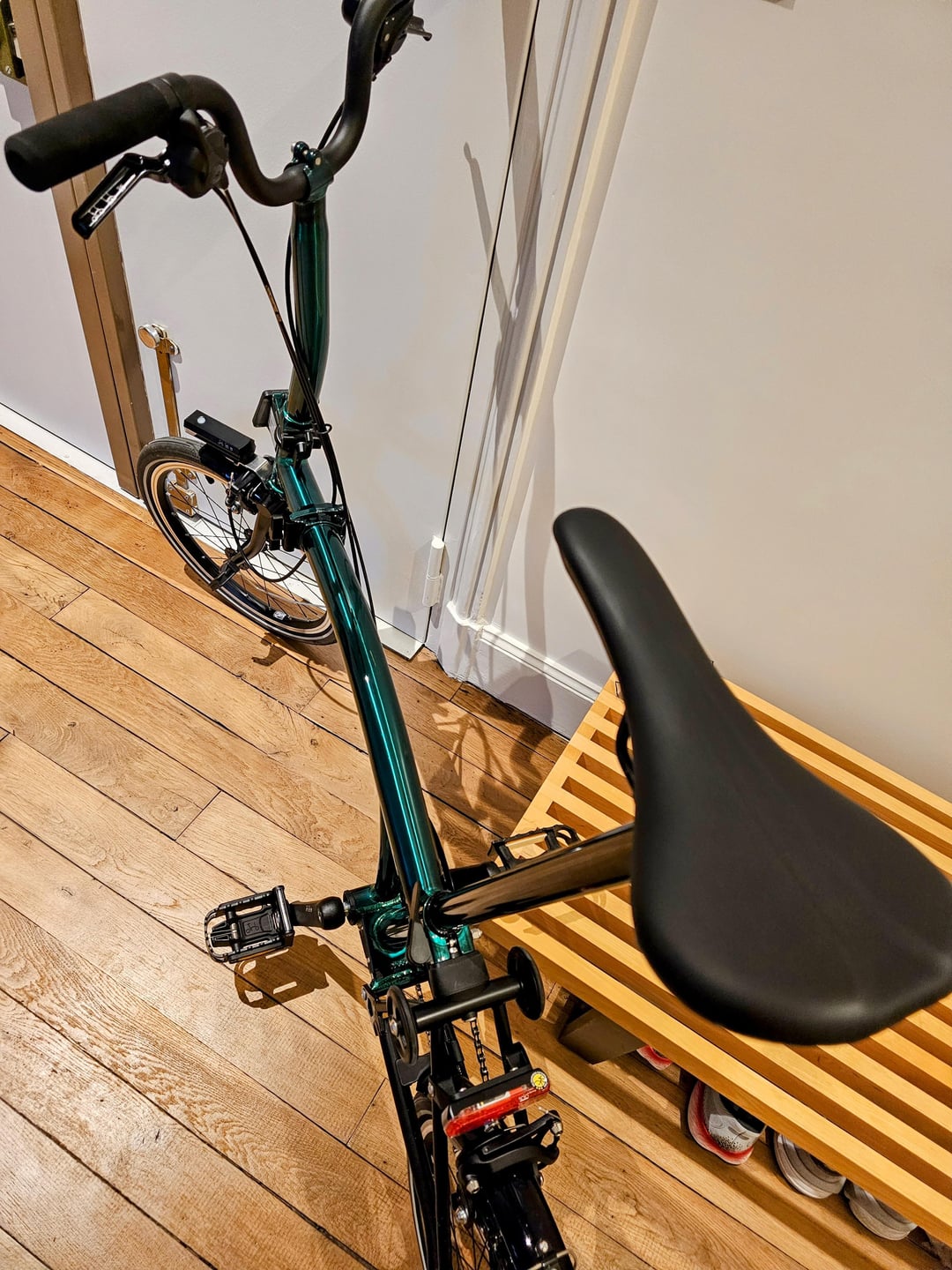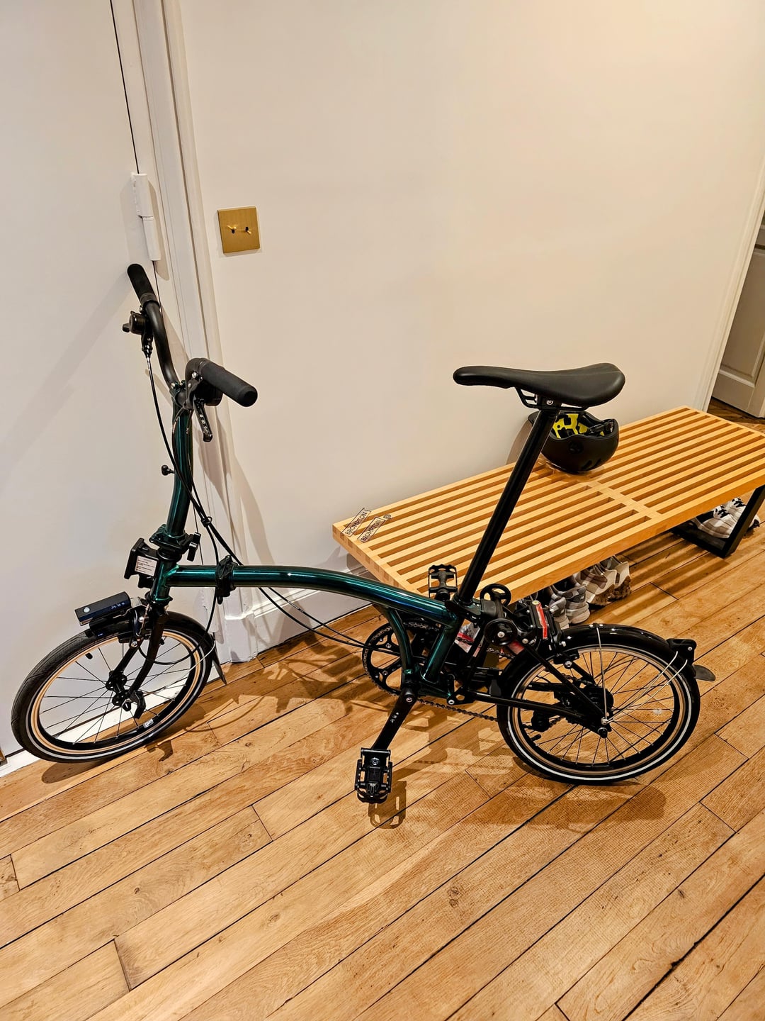 As requested, here are pictures with the 2 “Brompton” decals and the “P” line decal removed from the main tube.