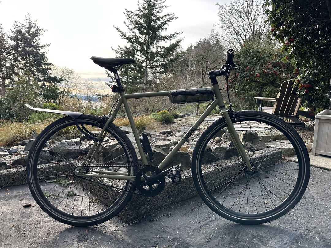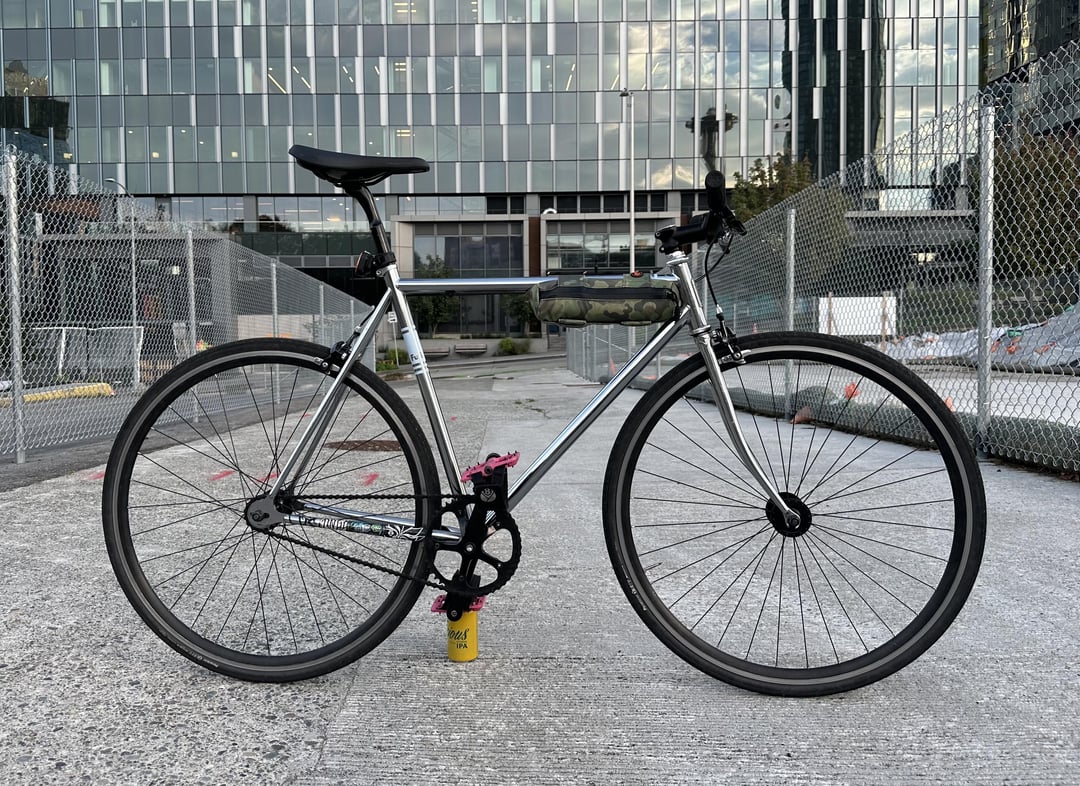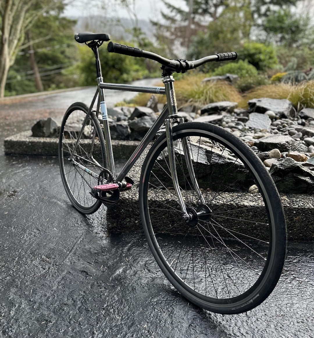 Been lurking for awhile…. Not cool enough to post in r/fixedgearbicycle because Seattle hills 😅 but wanted to share. State 4130 with 700×38 @ 46×16 and the Fuji Feather is 700×28 @ 48×16.
