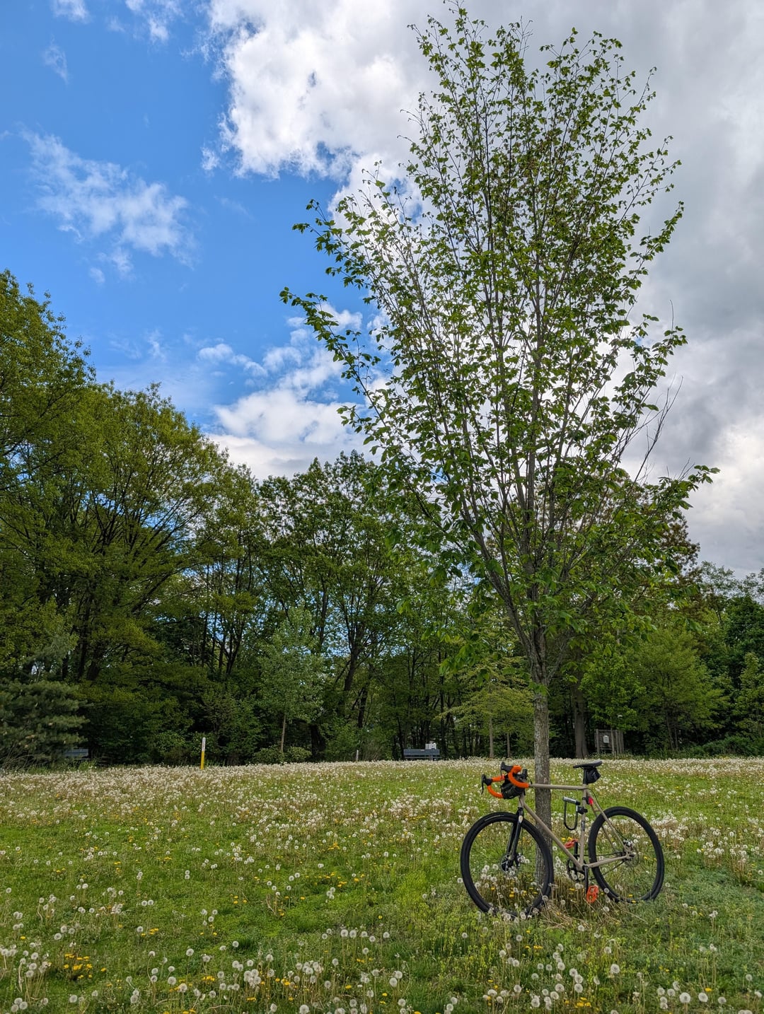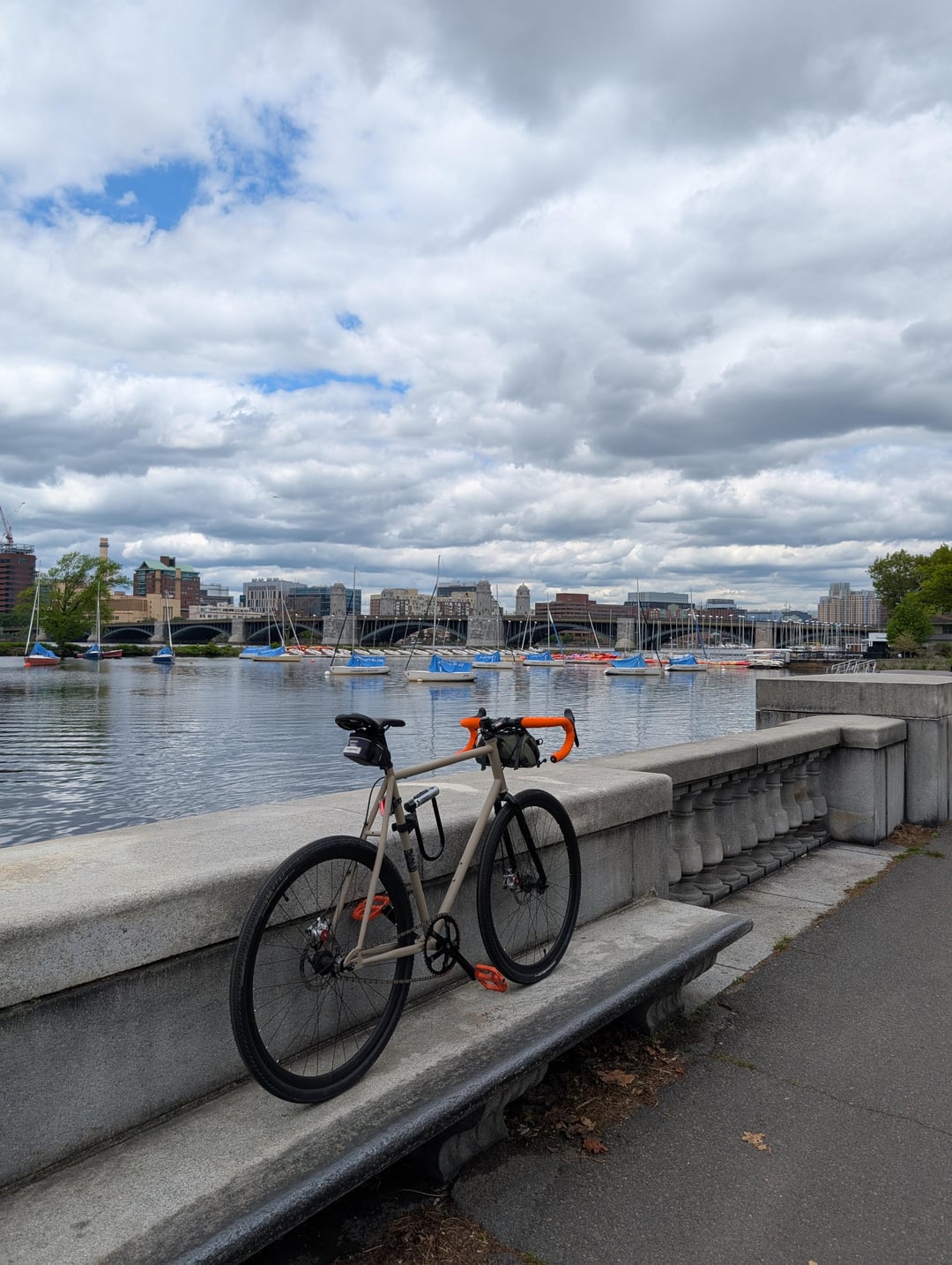 46/16 gearing, I also added some an Avid brakes and rotor kit, added a longer stem and some compact drops. I replaced the Chain and fixed the tension issue 🙂 It is a Motobecane cross uno frame, 60cm. Specialized 38c gravel tires. I am changing the gearing down to 40/17 for a 130mi ride I have planned for next weekend with some friends.