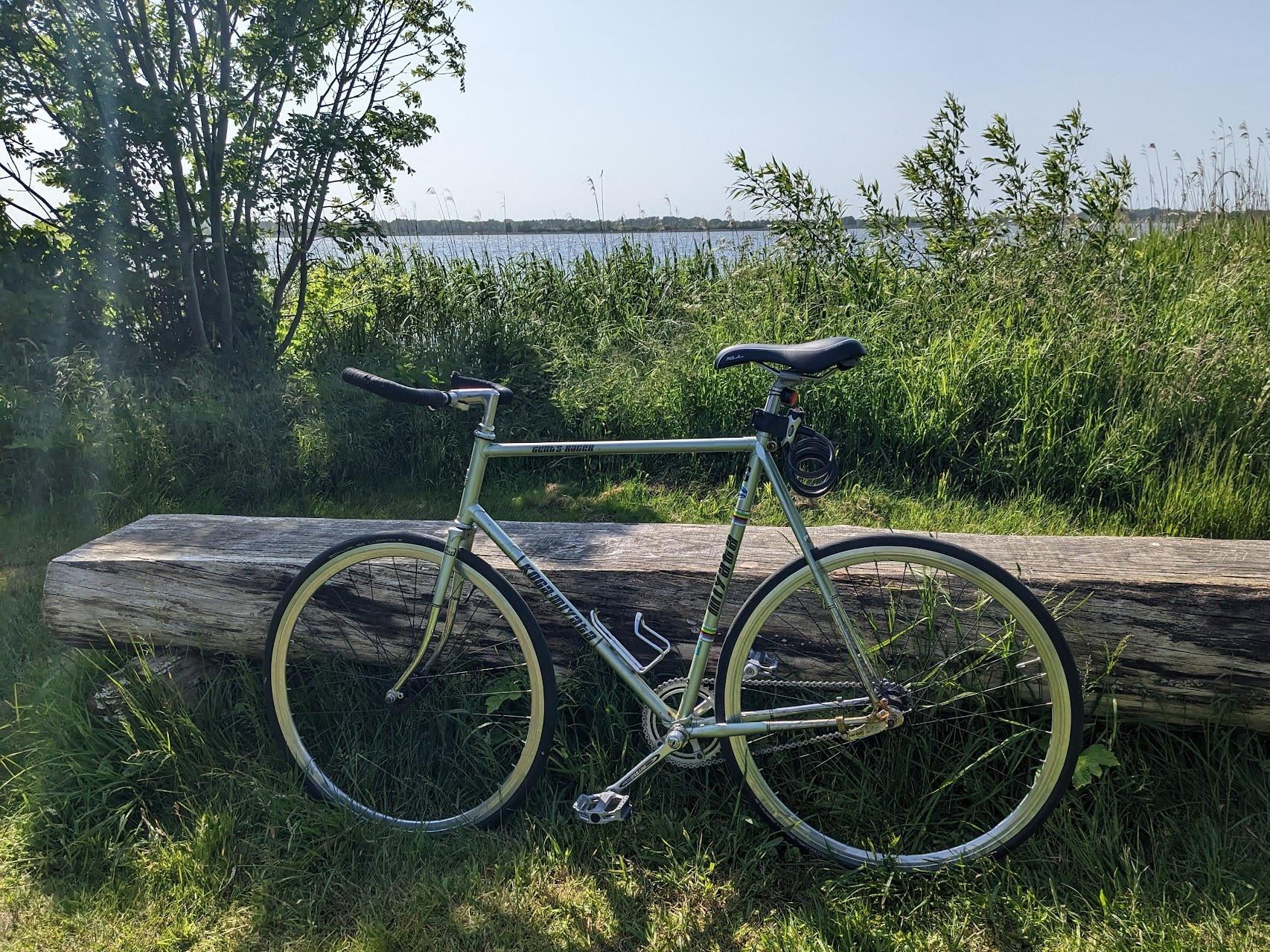 Been riding this creation of mine for four years. A single speed with coaster brake. Built on a 1978 Koga-Miyata Gents Racer frame. Sporting 622-13 alu wheels. 43×18 ratio. I absolutely abused this one going around the city and the countryside. I left it out in the rain in winters. Had multiple accidents that hurt me more than her. Only ever had to give her a new set of tires once. And she still delivers.