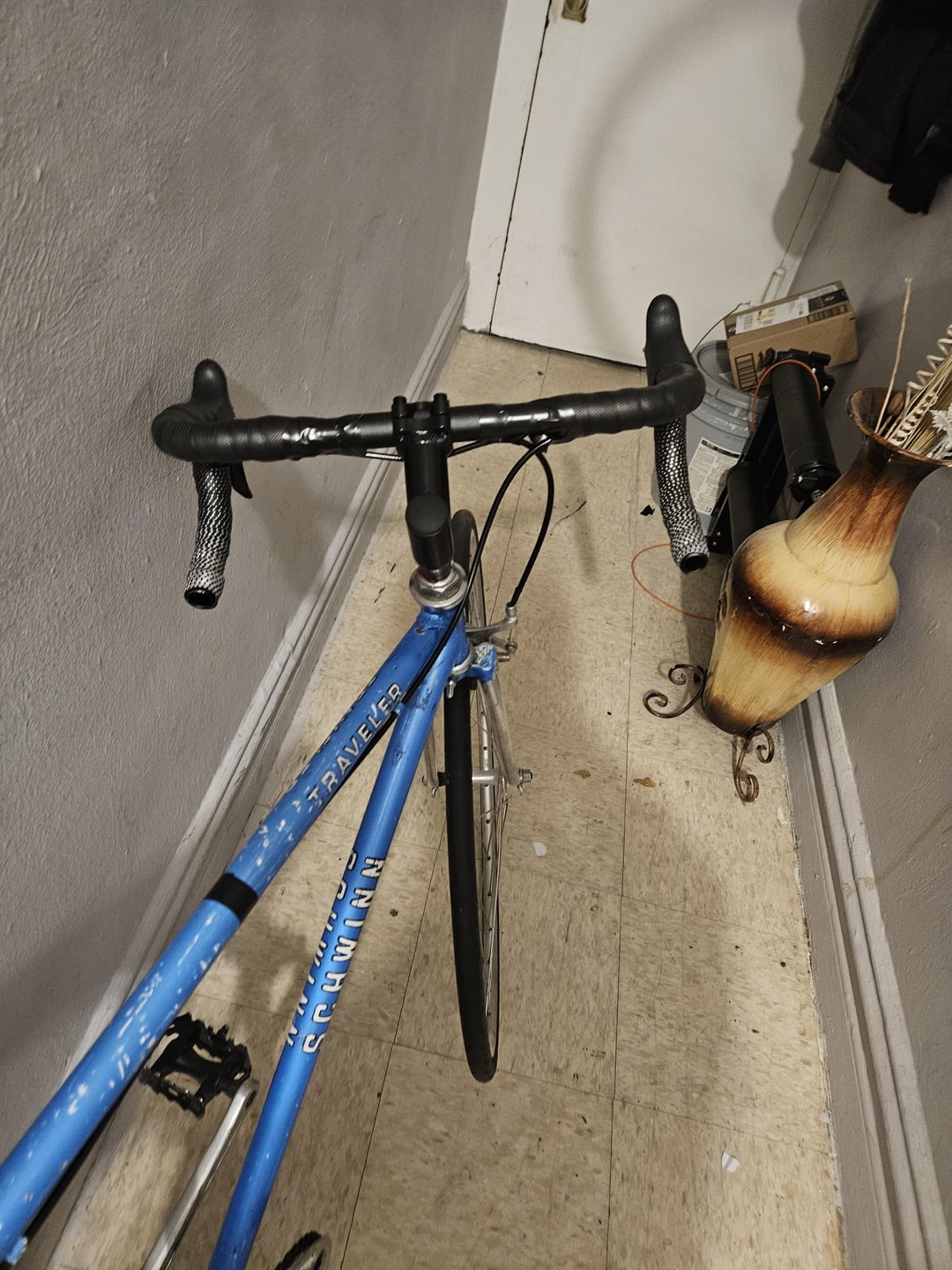 Started off as a vintage road bike (Schwinn Traveler) that was converted to single speed. After getting parts together, I did an overhaul.