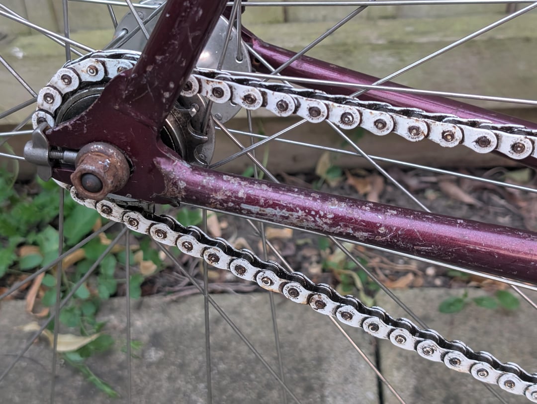 Picked up this today at a bargain of a price. Charge plug freestyle. Paid £85 for the bike (plus the original green rimmed front wheel, had a puncture when he sold it so he slapped a spare wheel on). While the bike was cheap, I want it to last. Where there's scratches on the frame, there's a bit of surface rust. Steel frame (nothing fancy, Tange plain)What the best way to neutralise the rust and protect it from rusting further?