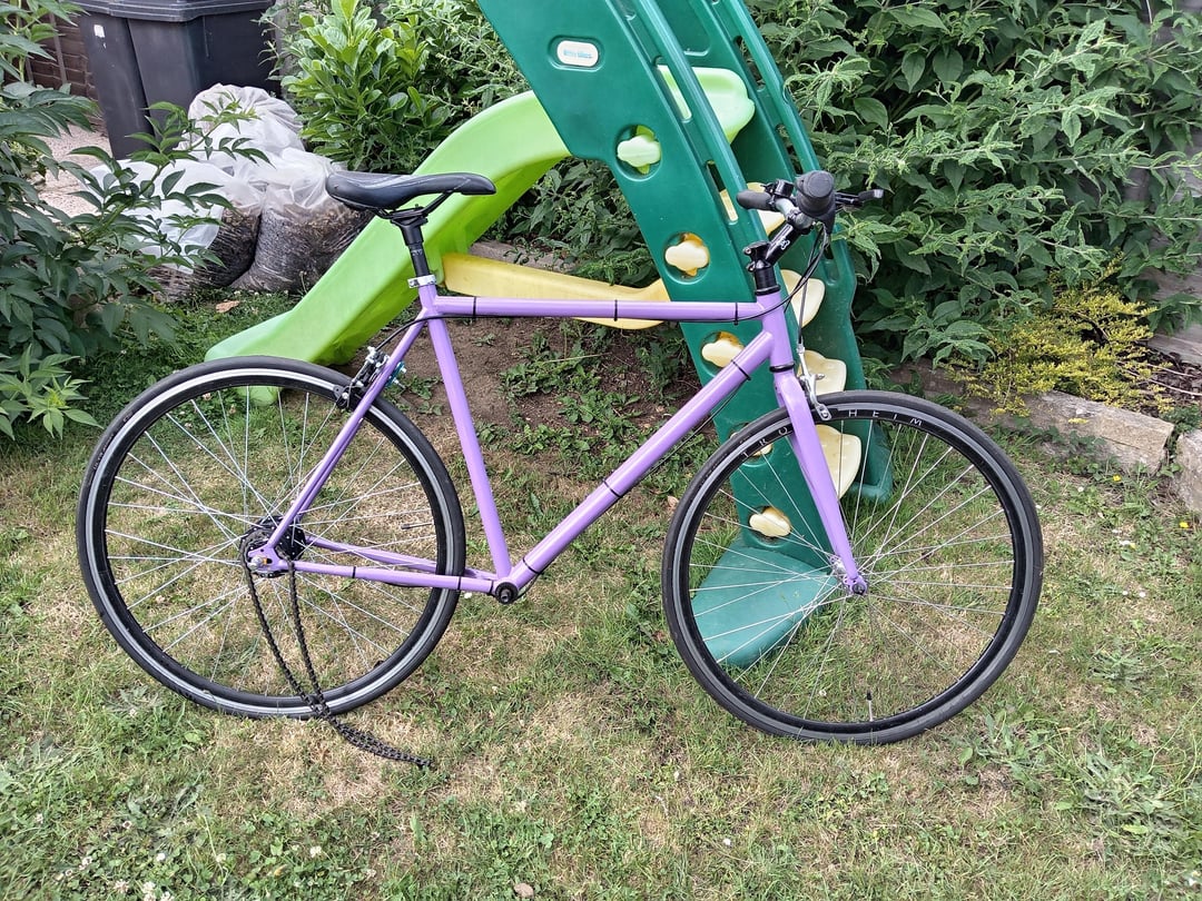 So here goes. I've got to many bikes. I didn't think it was possible. But it's happened. I have a lovely single speed trek and because of this. My fixed/single speed frame. Is no longer of any use and I haven't ridden it in years. It's steel and I had it full powder coated in this colour. There are a few marks. Nothing major. I'd just like the frame set to go to a good home. It's got a new bottom bracket and I can probably rummage up a half decent crank set also. It'll need wheels. But if someone can build something out of this. Please. Drop me a DM. I want it to go back into the community.