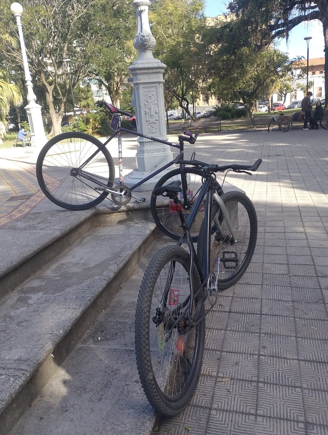 Facebook Twitter LinkedIn Pinterest Bluesky Threads Mine (black bike) and my friend's (purple bike) single speeds!! whut u guys think? Any suggestions on how to make my bike more commuter style? by radi0mode Bicycle Bike Fixed Gear Fixed Gear Bicycle Fixed Gear Bike Single Speed Cycles