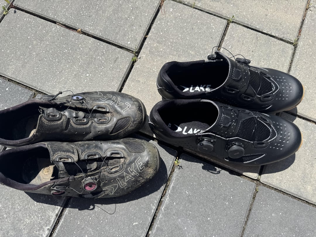 Not too flashy I guess but they often get pretty dirty. I use these for road, gravel, and MTB. (For CX racing, I have some Fizik shoes.)
