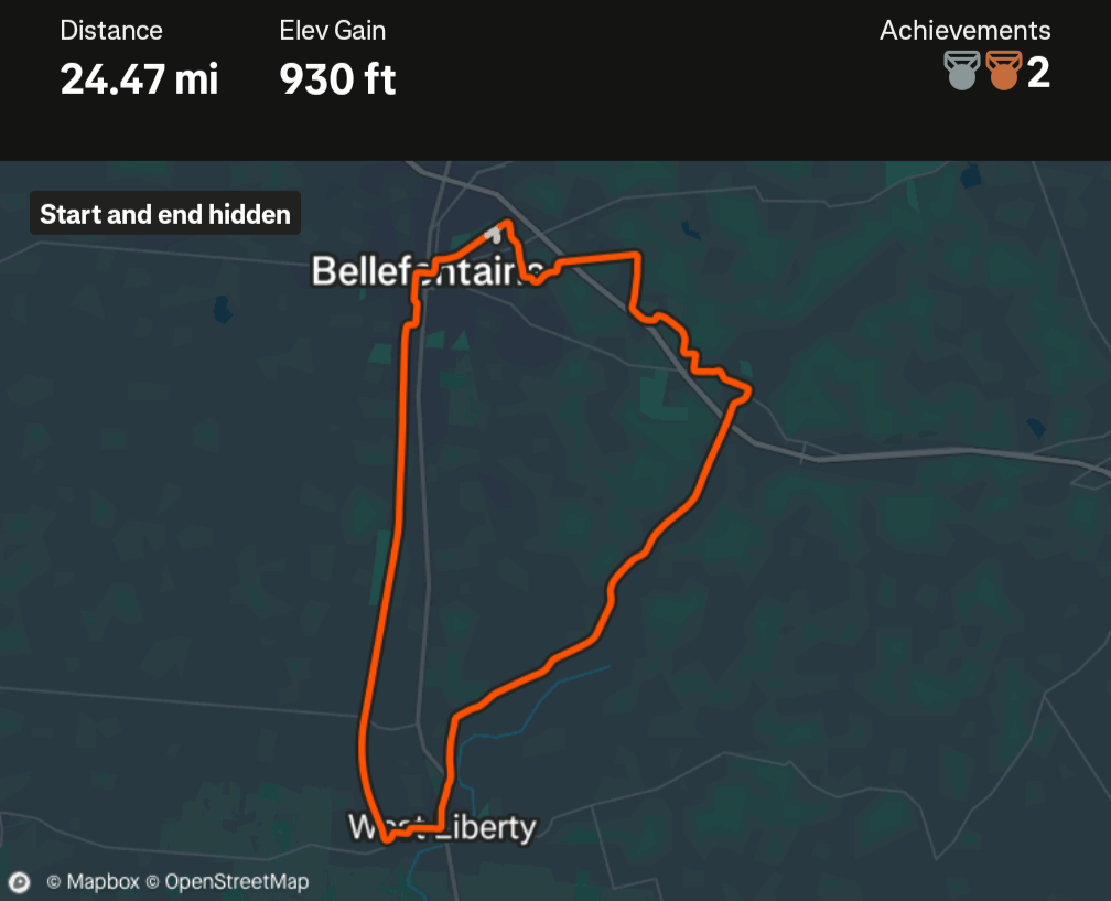 Most of my miles come from two lane country roads winding through the cornfields or wooded hills. My average ride is about 25 miles, though I've been known to squeeze in 12 to 15 mile or before work or a metric century on the weekend. My standard routes come in about a thousand ft. climbed though if I plan right and I could easily clock 2k to 2500 ft in under 30 mi. Or I could hit the closest rail trail and get 60 mi with about 300 ft.