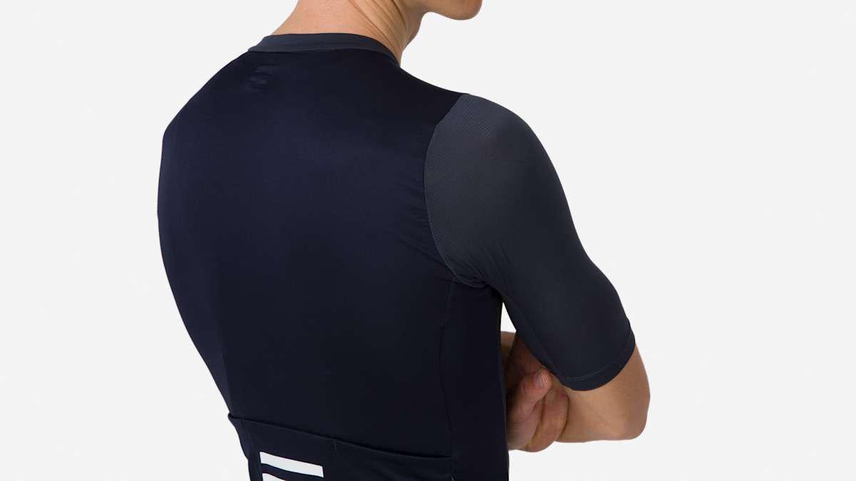2. The Rapha Pro Team training jerseys are thicker than a lot of the other brands I’ve tried. I like this because they hold up better over time. I bet you can still see the bib straps underneath. I haven’t tried a light color yet. Emailing Rapha customer service has always been helpful for me. Very responsive.