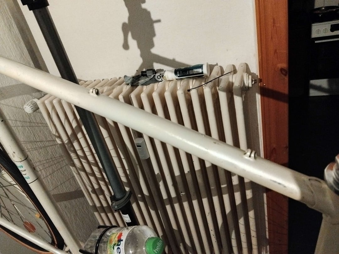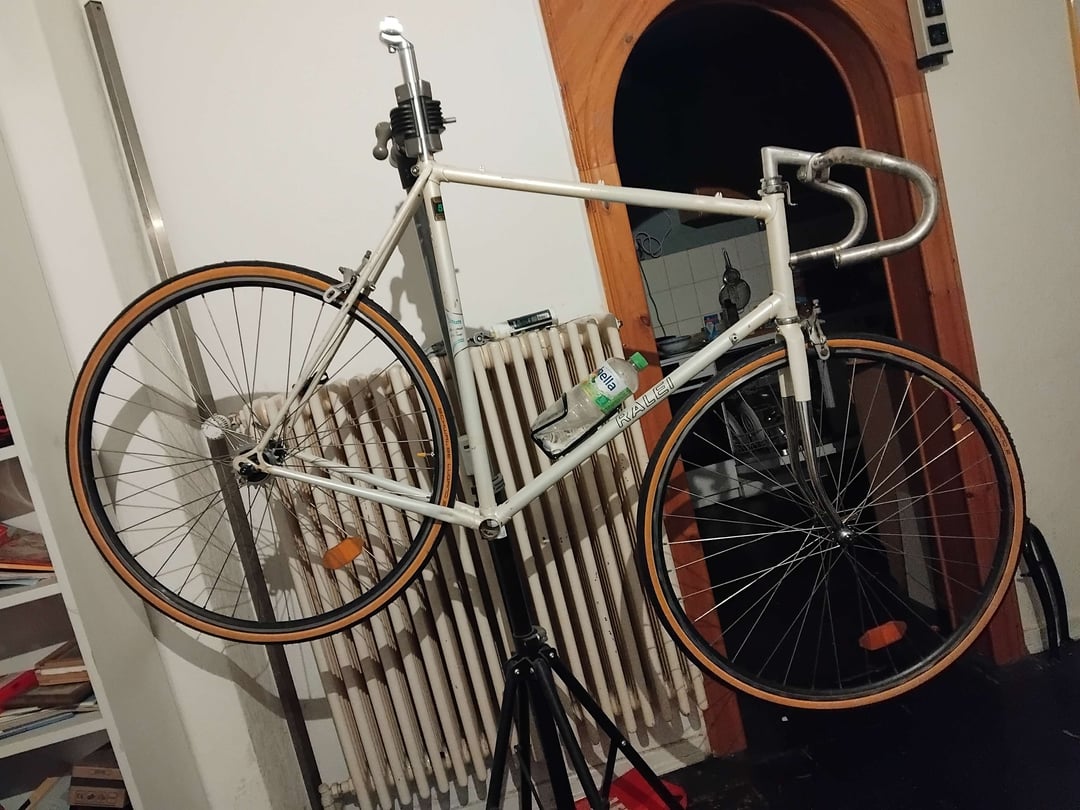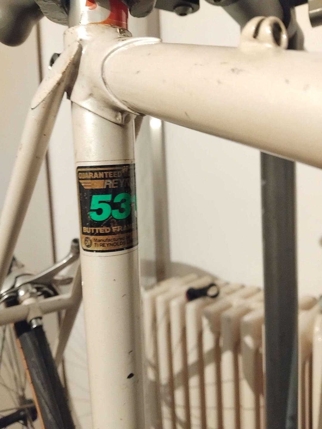 I got this frame cheap for 40 Euros, it had a big, very poorly touched up dent on the toptube that I mended.