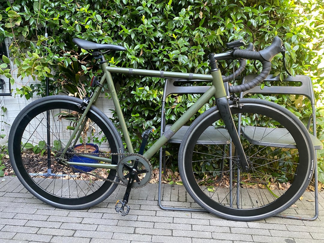 Bought for €80 from a friend with too many bikes. Added drop bars and a new saddle, also had to change the tires bc they were pretty worn. Swipe for the before pic 🙂