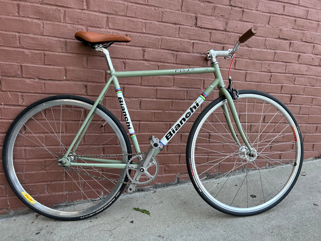 For many years I didn’t ride a bike until I saw this ad on Facebook marketplace on this pista. I wanted this specific color so bad but could never afford it. After like 15yrs of searching I found it. Looking like this (first slide) and ended up building it up either way part I found on different forums. Still under construction but tbh I don’t think our bikes will ever be fully constructed lol.