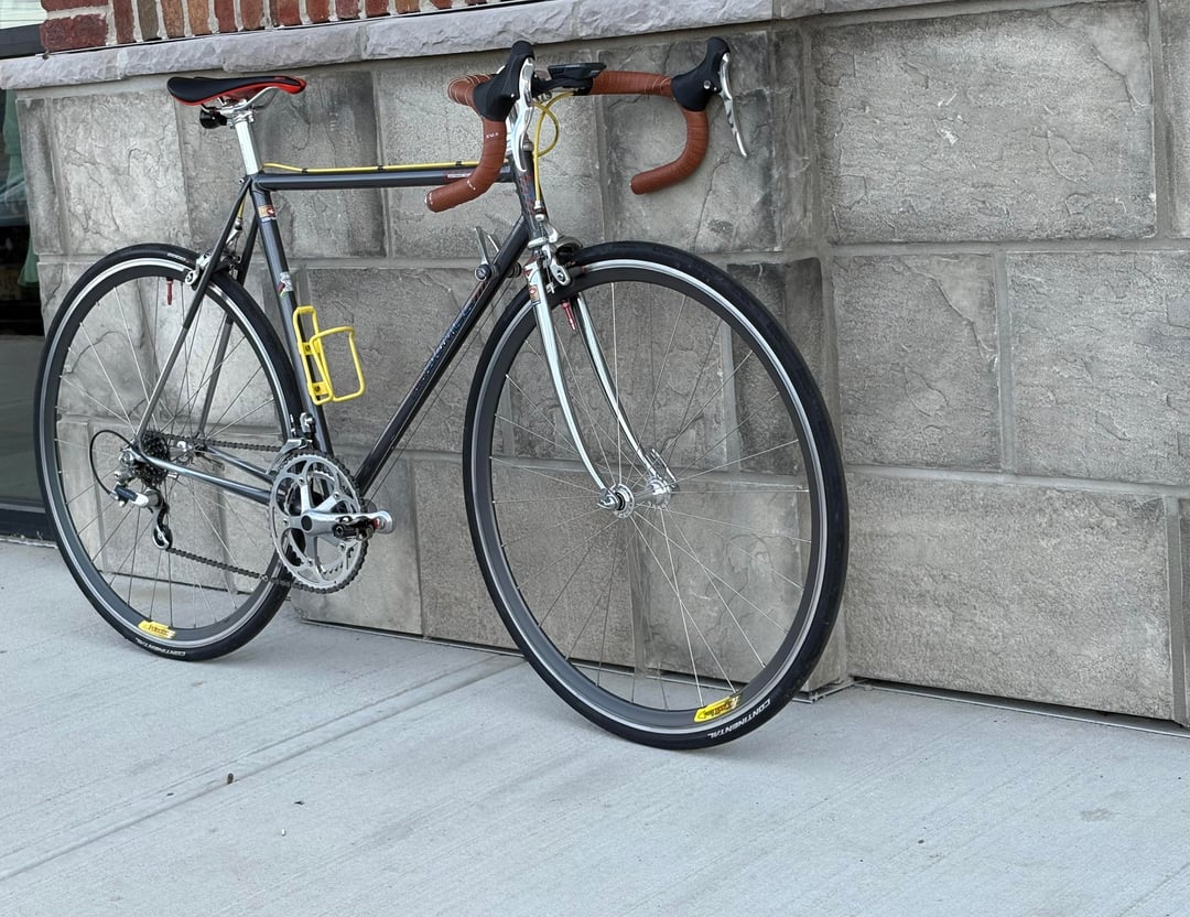 Thanks to ebay, bike forums, and my own parts bin, I finally have my first Italian steel bike on the road. Such a comfortable ride. And, fast. If I had to change anything, maybe I’ll swap out the rear derailleur outter for a yellow one.