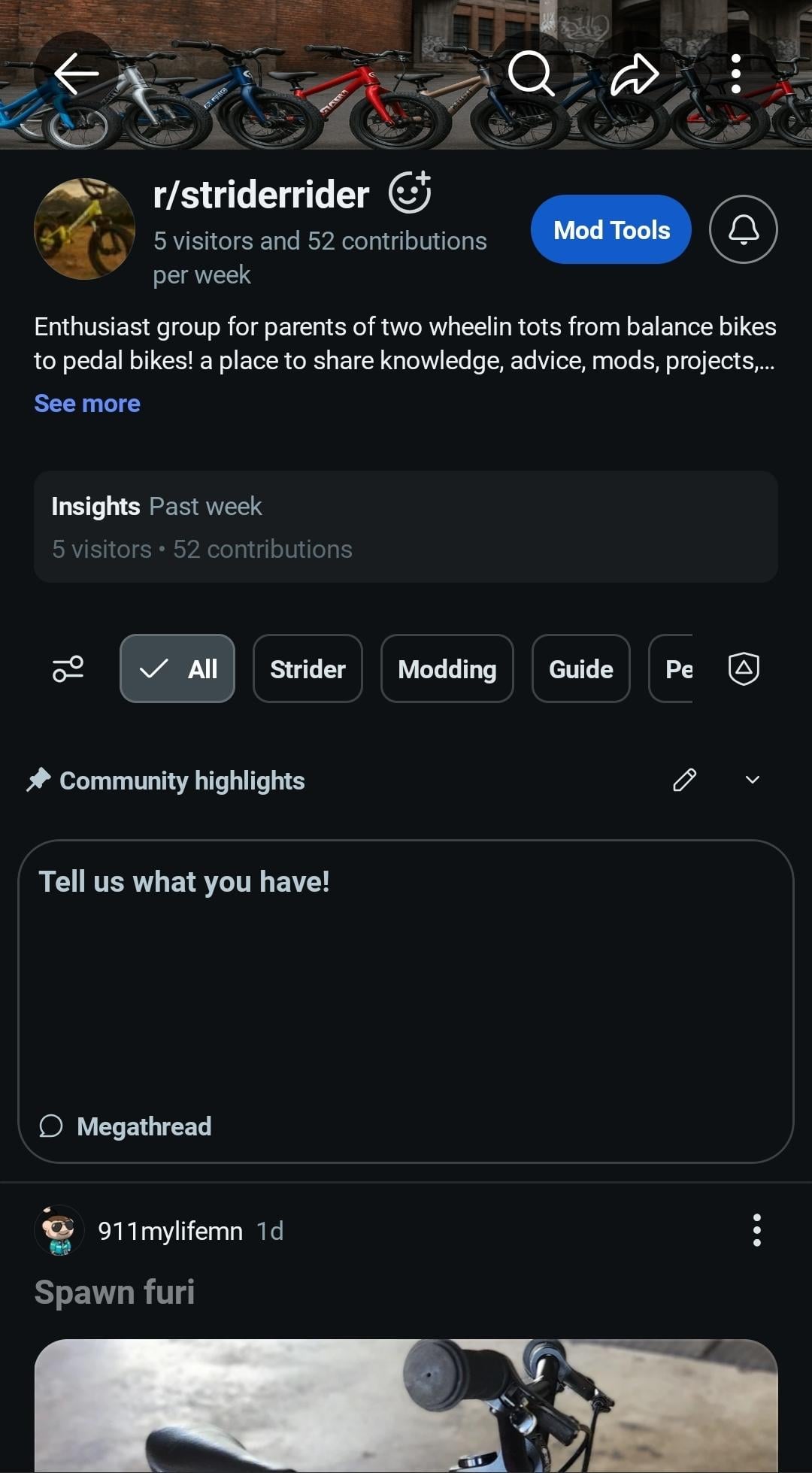 I started a new bike sub for enthusiast parents and their kids bikes! From balance bikes through 14" pedal bikes come share your knowledge, experience, questions, mods, or just overall joy of your two wheelin tots! Open to all bikes not just striders!