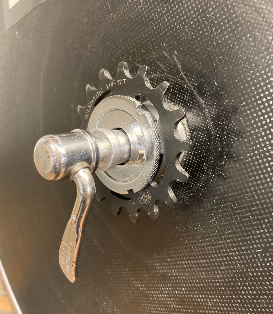 Bonus photo of a suicide fixed gear set up with a bottom bracket lock ring (which I do not entirely recommend).