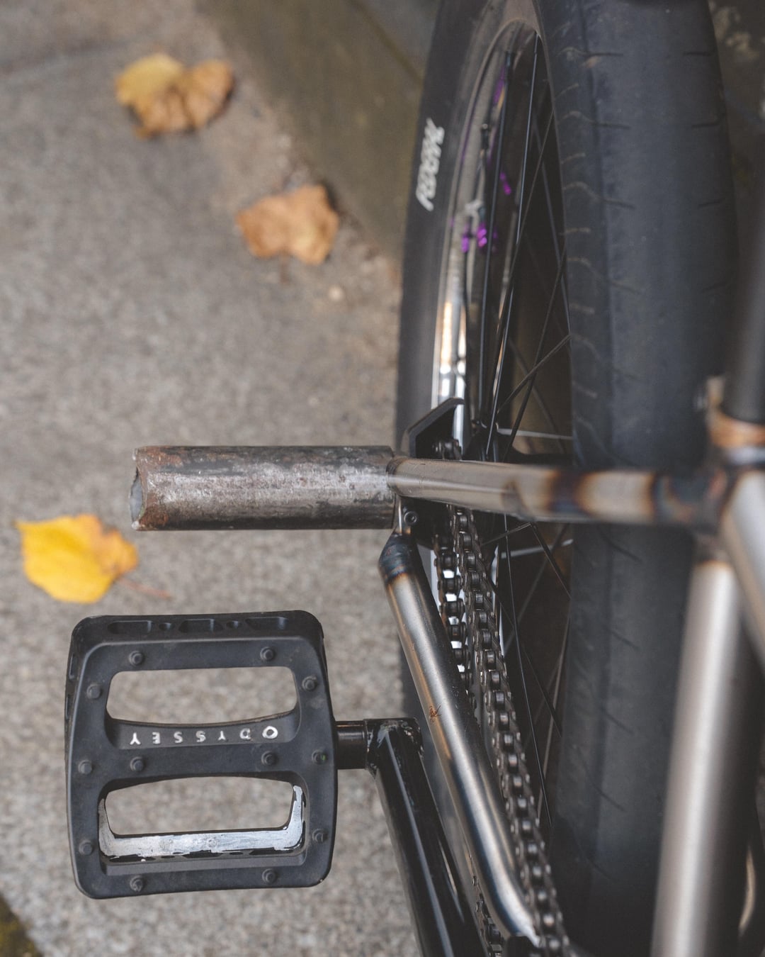 that-lolstein137 on October 14, 2025 10:28 am Here’s a parts list: cult biggie frame 21.25tt subrosa OM bars in 9.1 high, hoder grips and shadow barends markit/demolition sprocket and a shadow v2 chain odyssey r25 forks, cfl3 stem, calibur cranks and twisted pro pedals. Cinema stealth seatpost with WTP Dan Banks seat (that’s falling appart lol) wheels: eclat E440 rims laced to a primo balance casette and a odyssey vandero pro front. Federal command tire in the rear (2.4 wide) and a primo churchill up fron (2.45 wide) stock hubguards except an eclat overguard odyssey jpegs 4.5 edit: forgot the seating situation