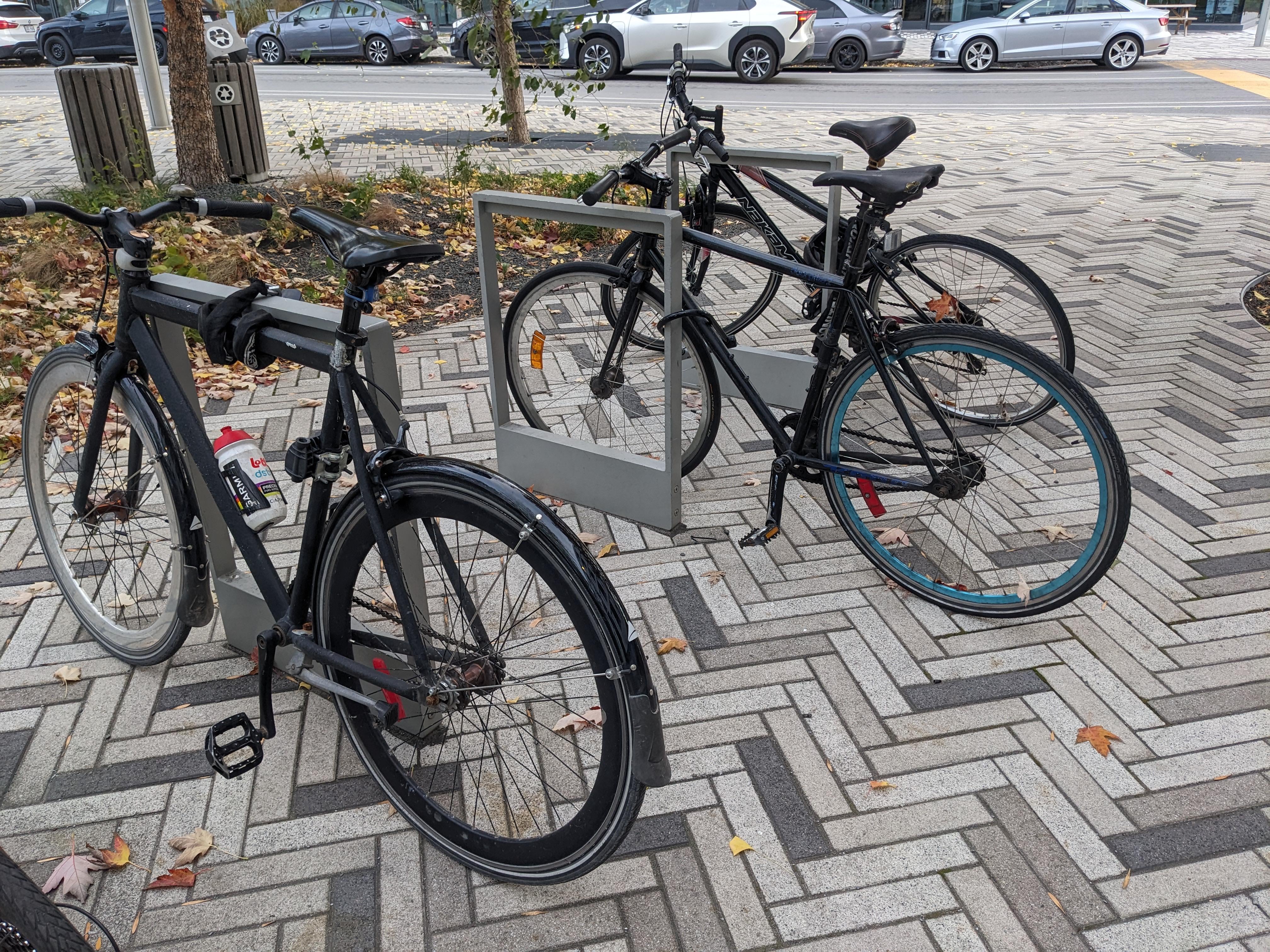 It’s both leftover aesthetics from the fixie fad, but also actual leftover parts from the fixie fad. You can see the fixed cog on the closest bike.