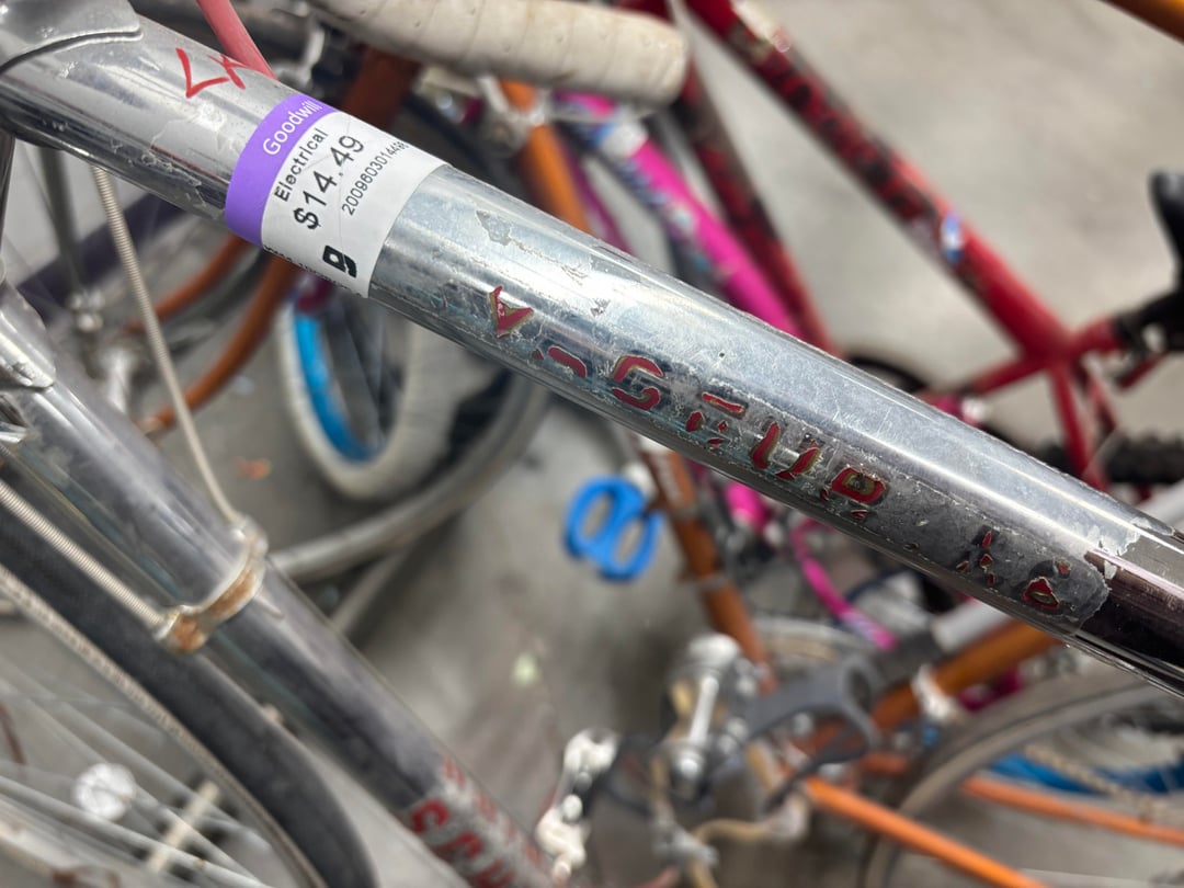 Facebook Twitter LinkedIn Pinterest Bluesky Threads These are at a Goodwill in Tempe. If I had the time or the space, I would pick them up clean them up and ride them, but I figure might as well leave them for someone who can do them justice. by Guitar_Nutt Bicycle Bicycling Bike Biking Cycling Vintage Vintage Bicycles Vintage Bikes