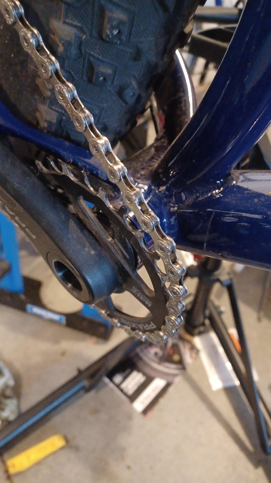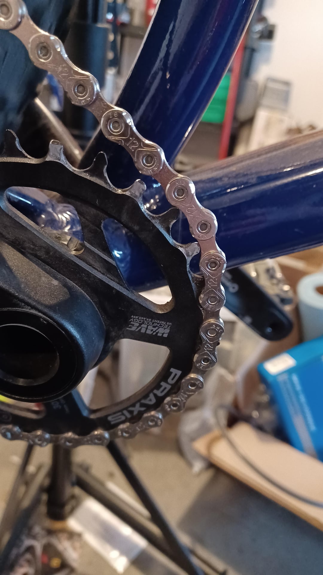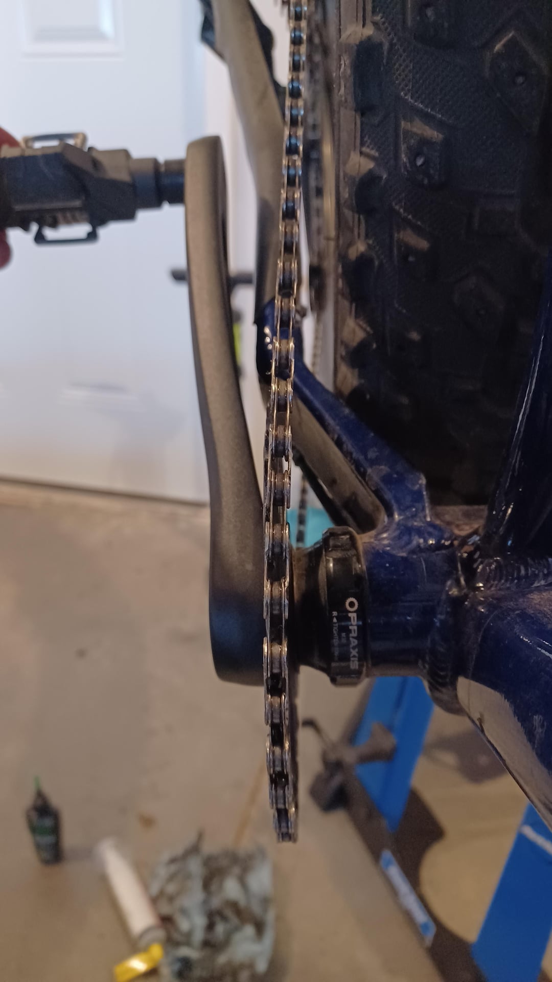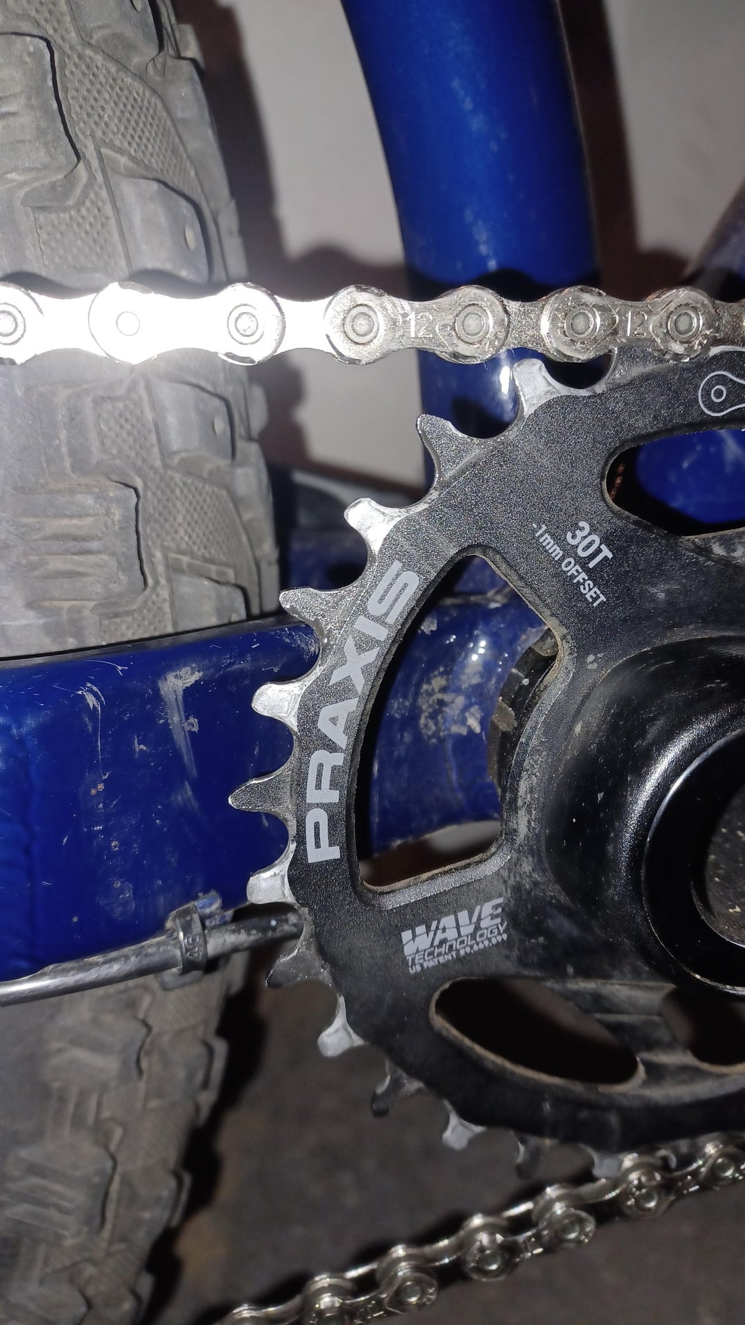 2022 Norco Bigfoot 1, 1×12 Shimano XT derailleur, unknown 10-51 cassette, and 30T Praxis chainring and crank. I replaced the previous Shimano CN-M6100 chain with a KMC X12 when a Pedro's chain checker barely registered 0.5% (had to push it a bit). This was at 960 miles.