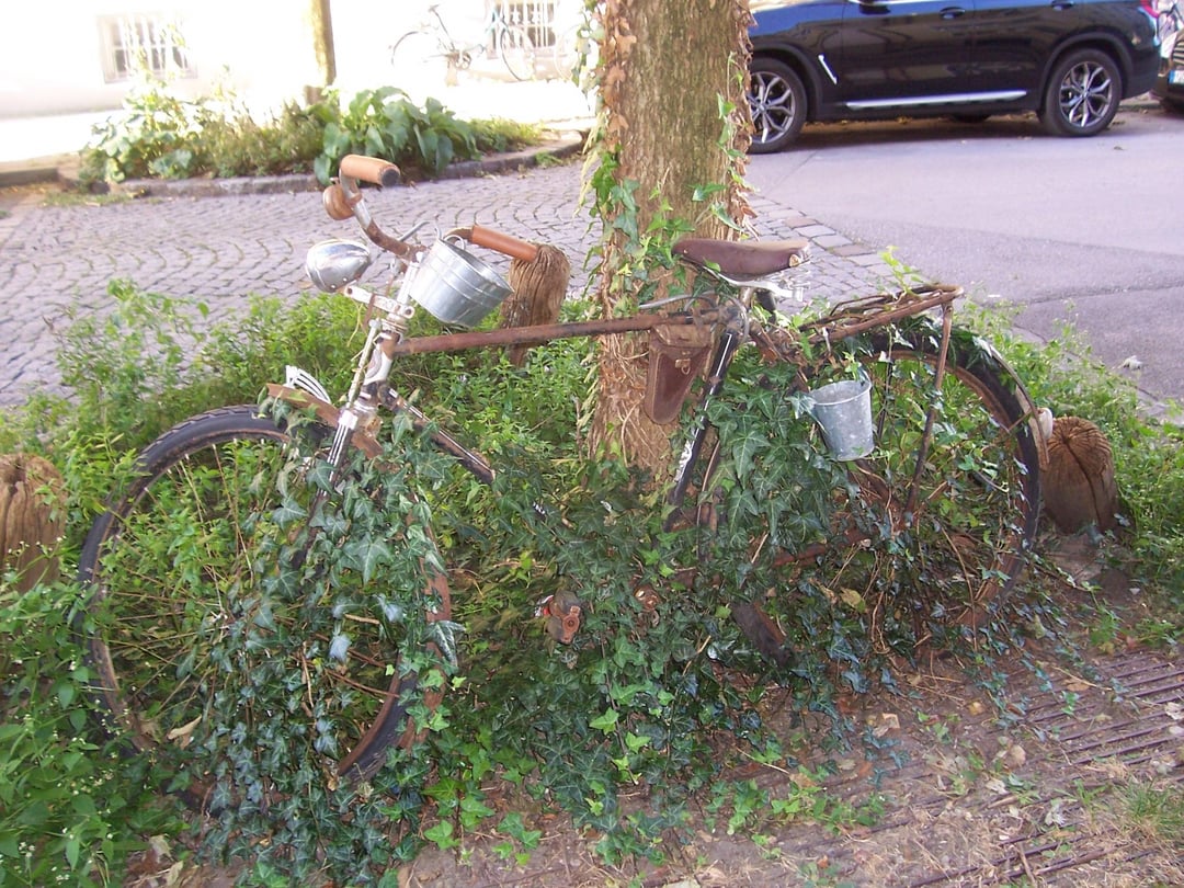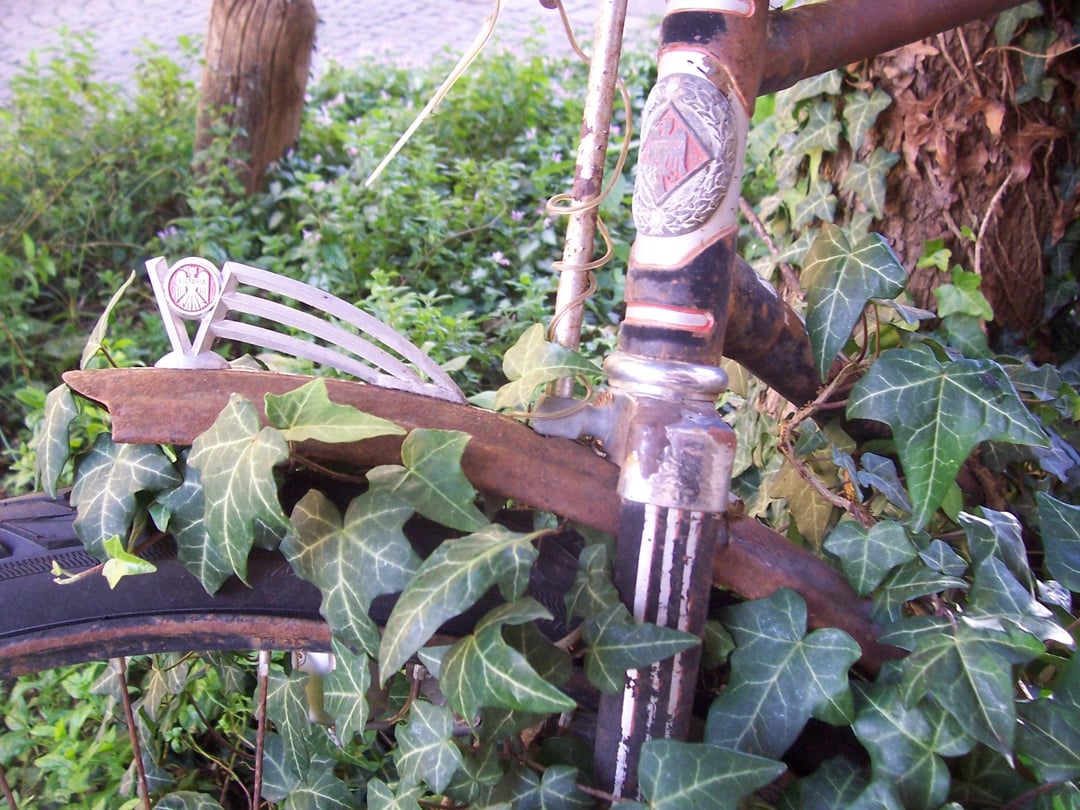 Facebook Twitter LinkedIn Pinterest Bluesky Threads A pre-war bicycle, made in Germany, is just sitting there, slowly rotting away as "art" or garden "decoration"—far too good for that, in my opinion. What do you think about letting classic bicycles rust away as decoration? by SBCProductions Bicycle Bicycling Bike Biking Cycling Vintage Vintage Bicycles Vintage Bikes