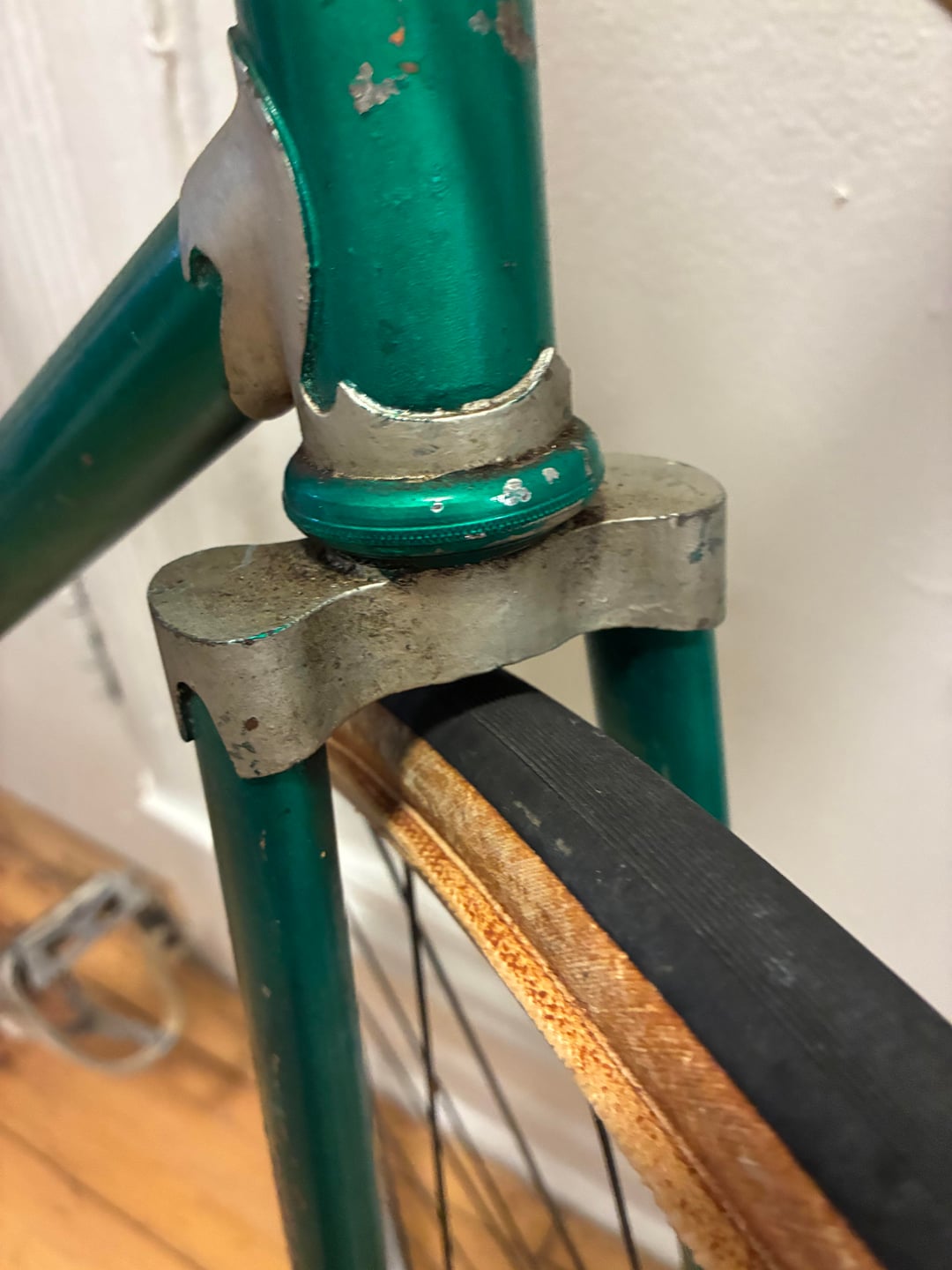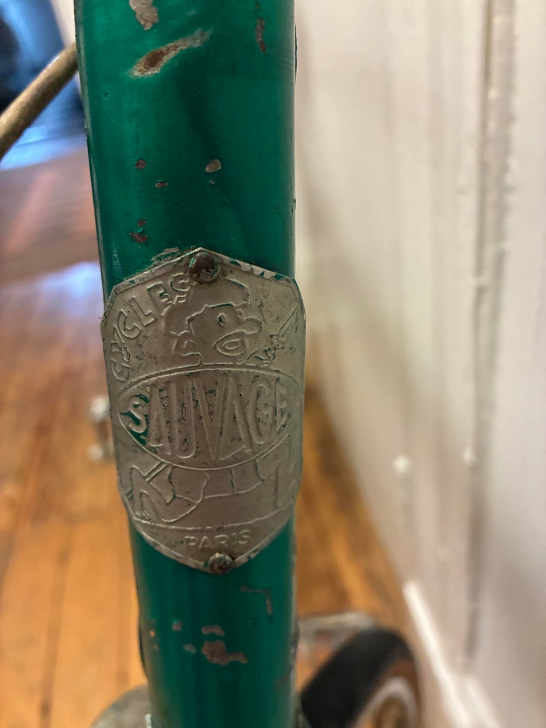 Picked up this really rad old track bike over the weekend. Bought it from the second owner, a 78yo guy who used to race it all over Long Island. He said he repainted it at one point in its life and it’s looking like it’ll get a second coat under my tutelage. Guy told me it was a pre-Lejeune Sauvage (note he the head badge) but without the original paint/decals it’s hard to confirm. Everything except the handlebars came with the bike (swapped the old GB drops for newer track drops) planning to restore this beauty but wanted to share here before the process begins. GB stem is really rad, not drilled for a front brake like a true track frame, tubular tires, sugino group head and nifty little accents all over. Very excited about this one, been in the market for a vintage steel track bike for a while and this checks all the boxes! Roughly 15#