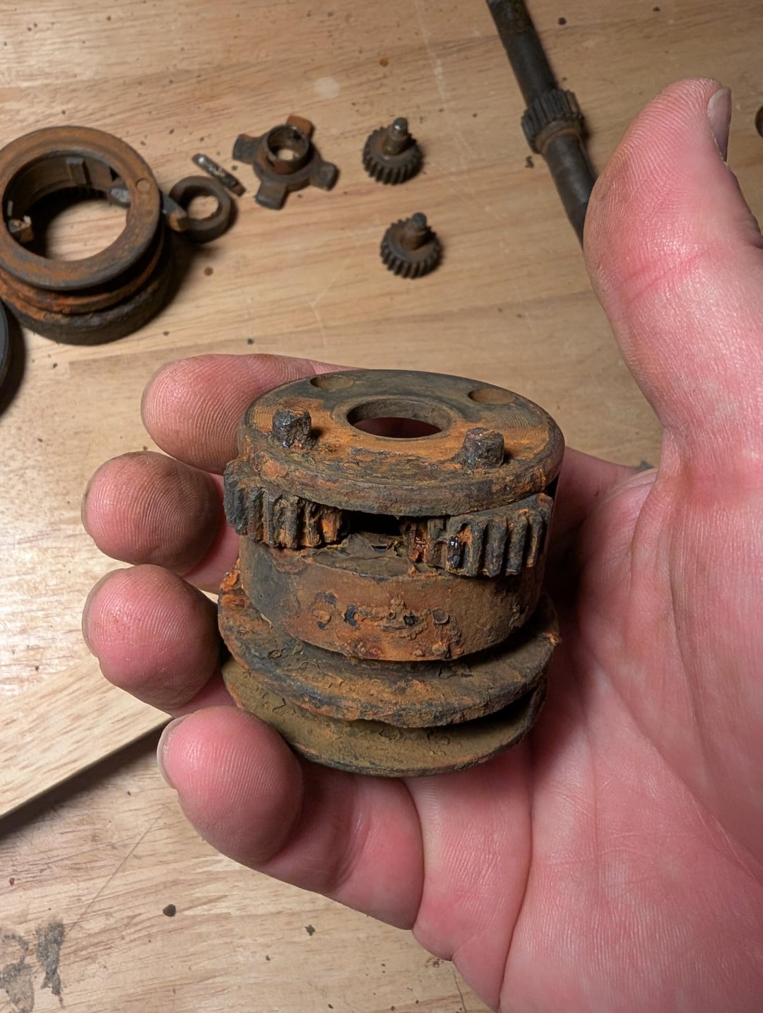 I got this suntour/stermy Archer 3-speed apart and it's pretty locked up. Looks like it's had water sitting in it for a while. Half of it's rusted pretty solid. I can kind of get the rusted one of the rusted cogs to turn. Was thinking I could get the pins out and get them out to clean up. But I'm having a hard time. Is this sucker too far gone? Can I soak it in CLR or something to try and get some of this rust off and maybe loosen it up? What would you do? Thanks in advance.