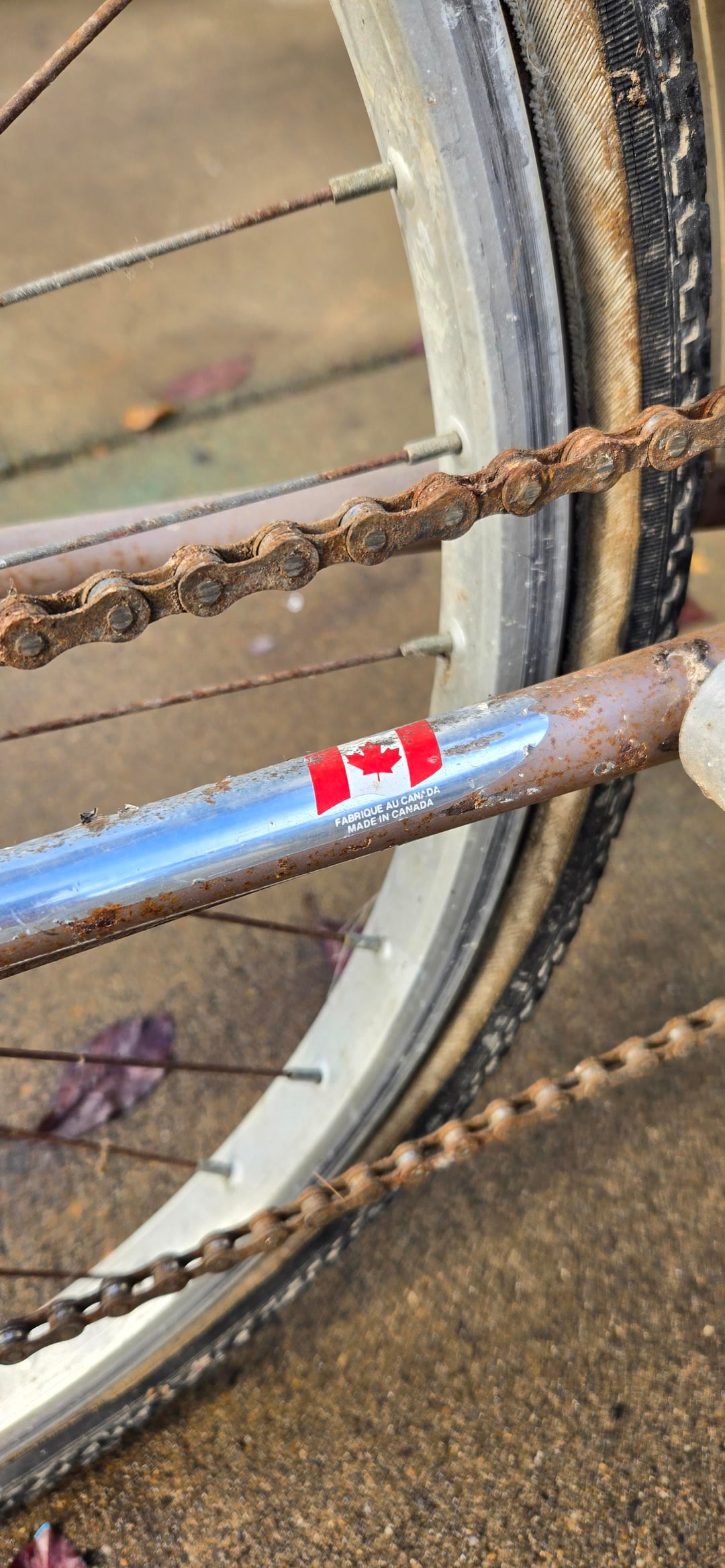 for $35 you get a pail of rust. And then you spend x3 more to make it ride. Be ready for popping spokes. Bikes stored in that conditions have rotten spokes that split. Don’t get me wrong – i am fan of tinkering around old bikes, but it would be too much for me.