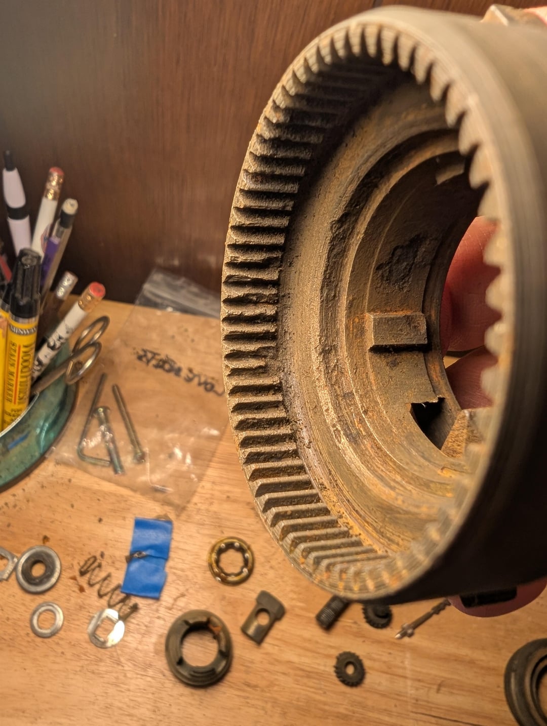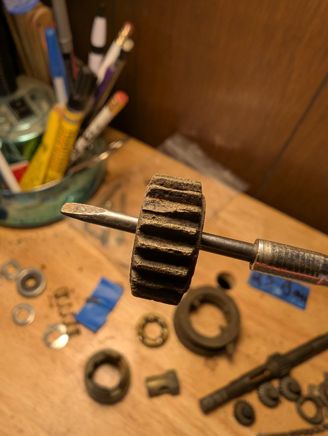 Facebook Twitter LinkedIn Pinterest Bluesky Threads This is all damaged from rust. As I'm cleaning it. It does seem like the most of the gears are in fine shape, but there was definitely some pitting and one gear is missing an entire tooth across the whole body of it. Picture 2. by atxbikenbus Bicycle Bicycling Bike Biking Cycling Vintage Vintage Bicycles Vintage Bikes