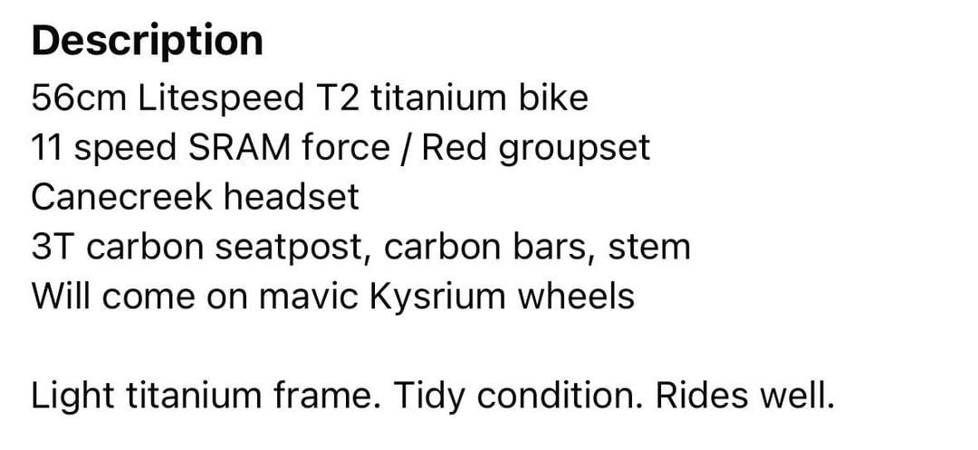 I have not been actively considering Ti bike due to cost in the past but this one is potentially in my price range.