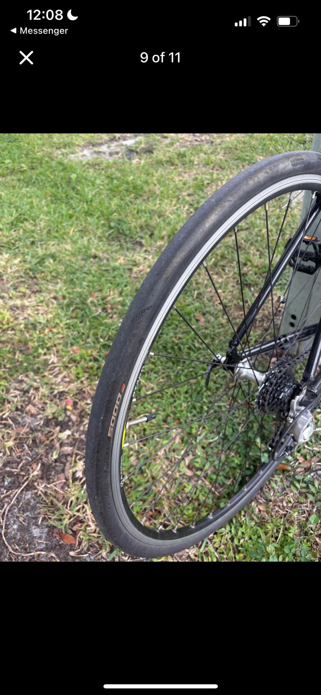 As for the asking price, the seller’s cost for the tuneup and tires are probably controlling what he/she thinks is fair. The GP5000 tires that are on there, if actually new, are at least $100 for the set.