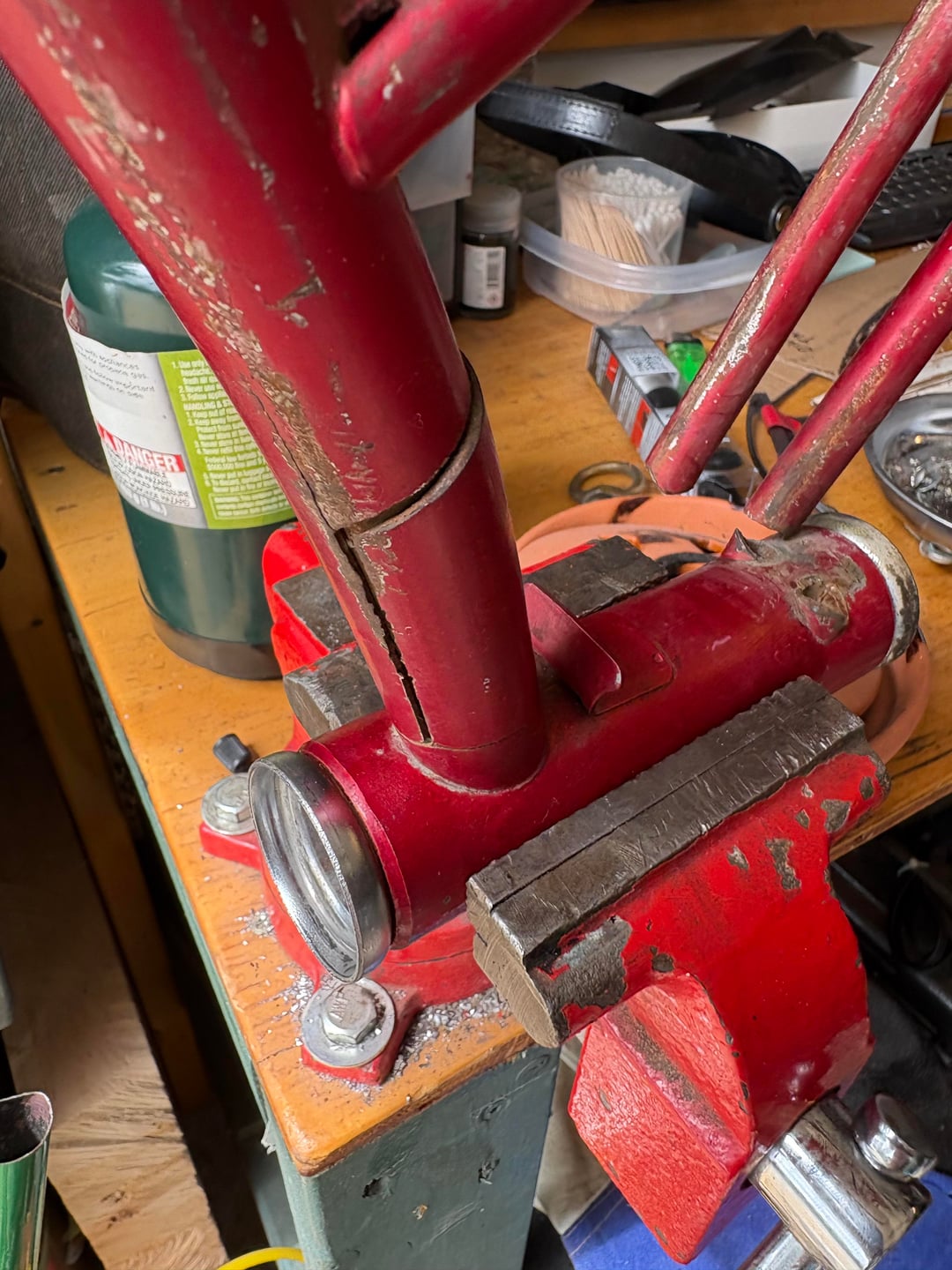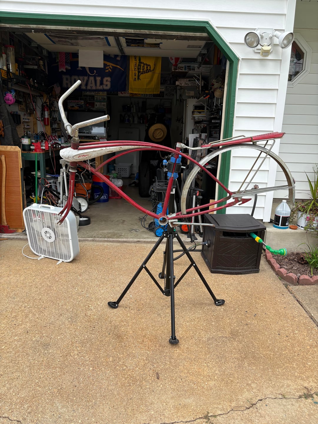 I bought her for $40. As you see her in pic 1. Opened her up and saw the broken tubes and frame. Had a friend weld her up, another friend blast and paint her, 2 donor bikes gave up the running gear and seat, and the last pics show her finalized.