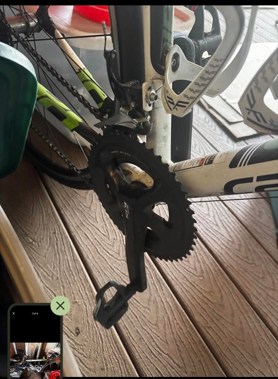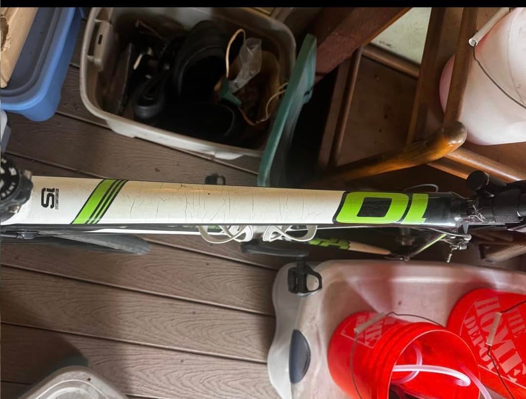 The paint on the top tube may be cracking because of sweat dropped on the bike while on the trainer. When a bike has spent a lot of time on a trainer, you’re going to want to anticipate some potential costs you’ll need to undertake as soon as you buy it, including (but not limited to) disassembly/service of the stem/fork/headset area, cassette/chain replacement, extra inspection around the rear dropout.