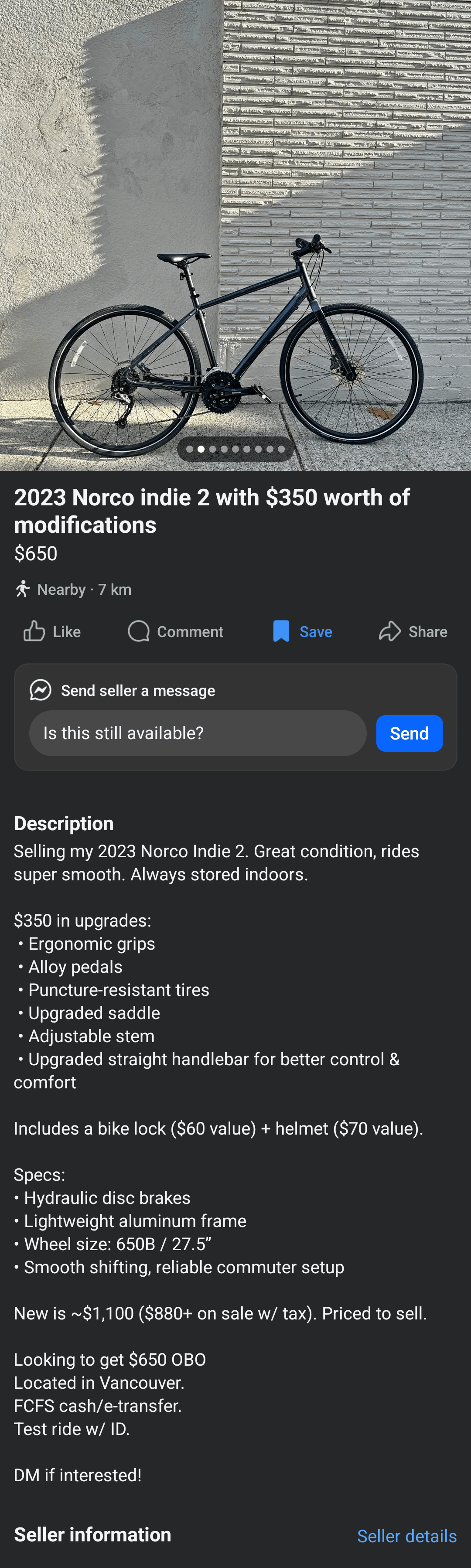 I don’t think the price is too bad even considering the age, 530 CAD/375 USD. Might see if you can talk them down a bit more as they are not accurately representing the age of the bike.