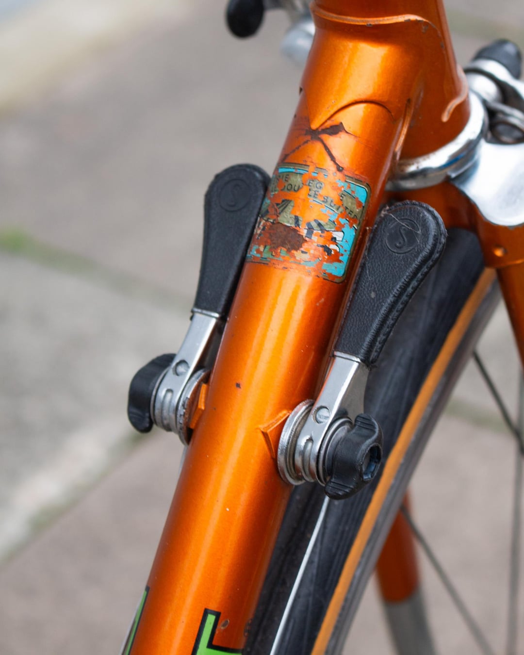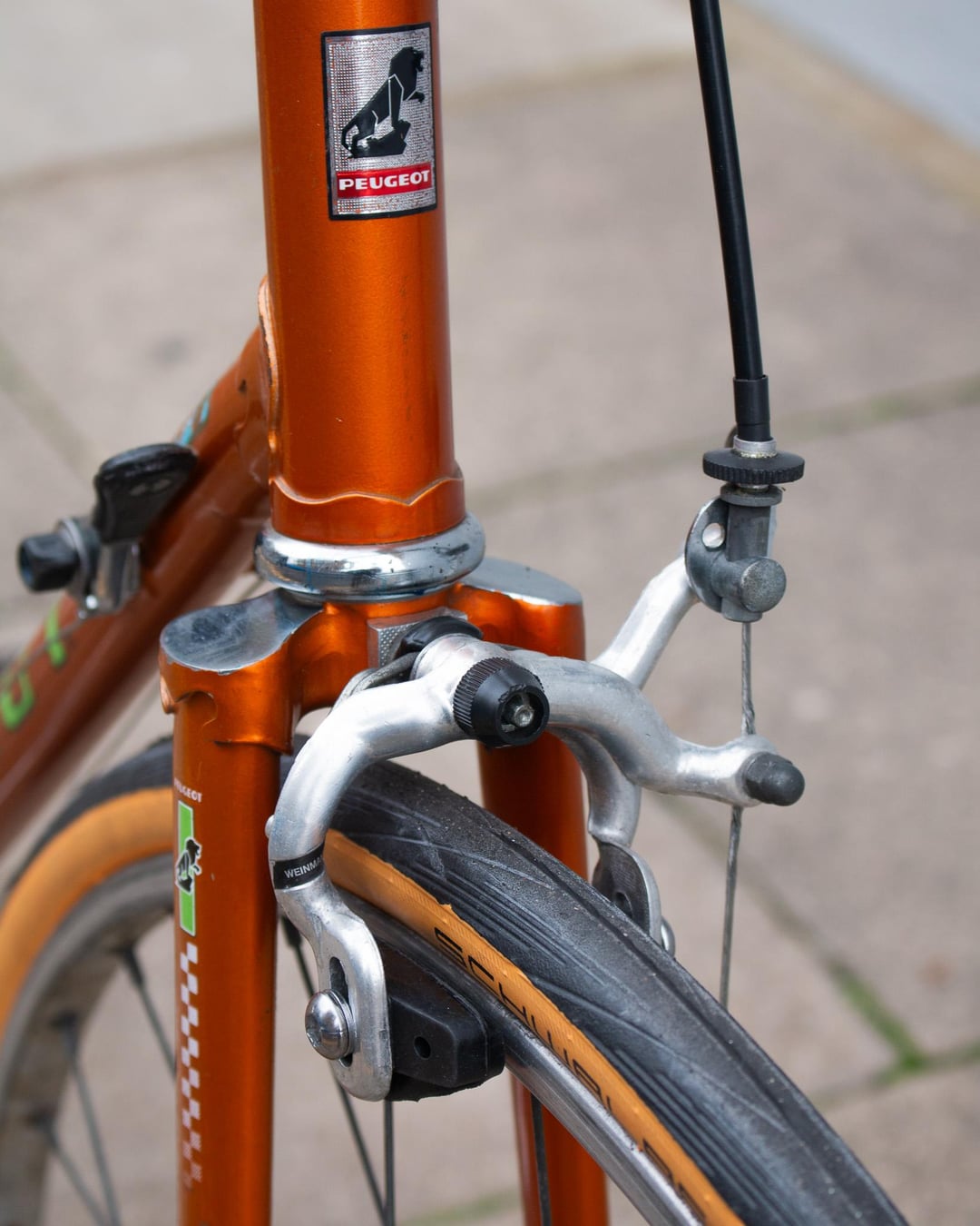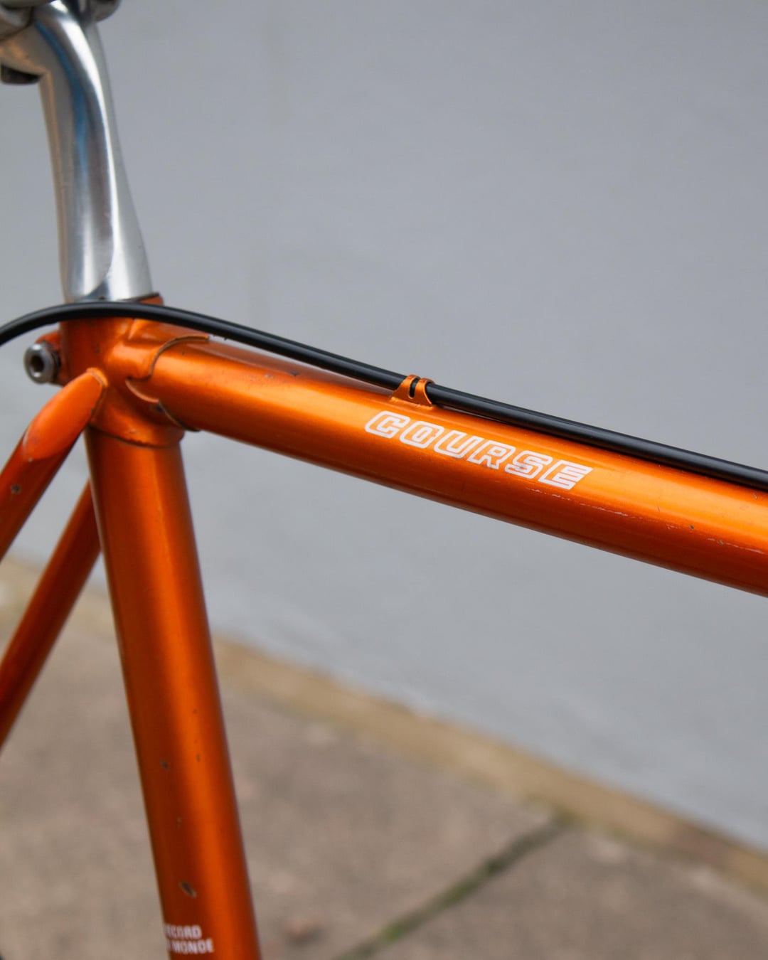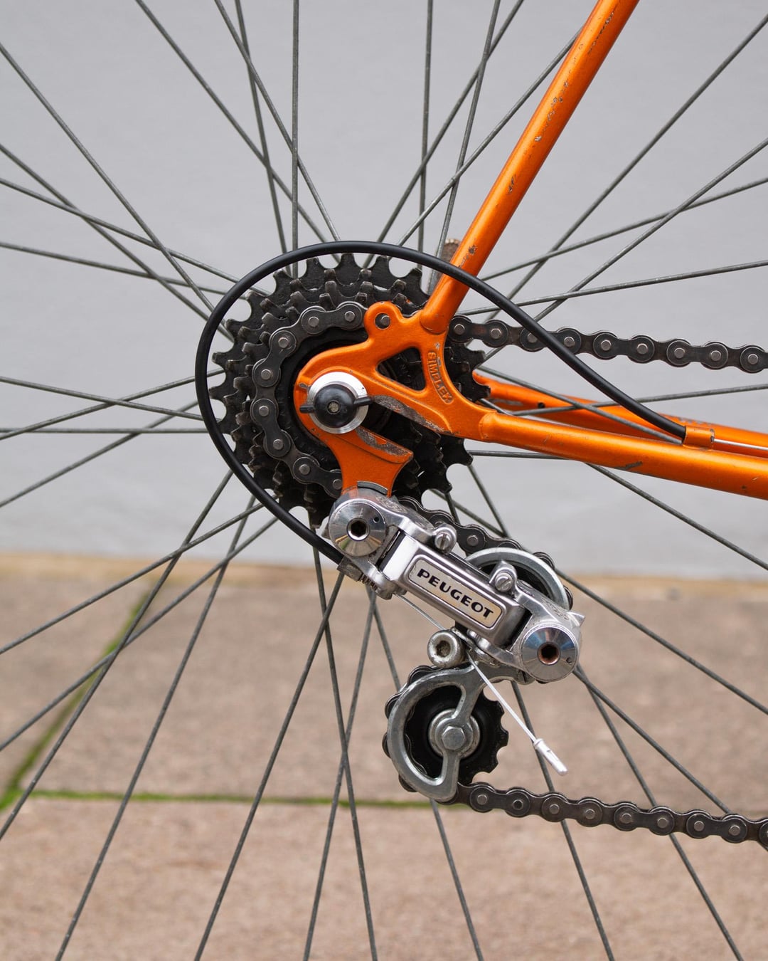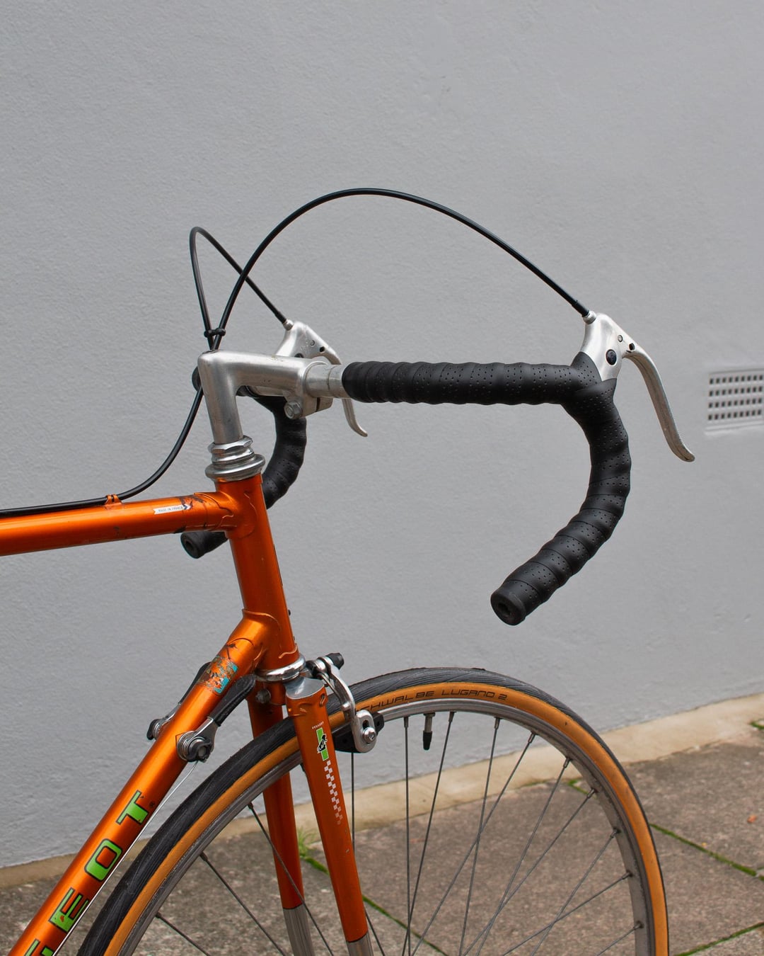 It features all the classic French components from that era, Simplex derailleurs, Peugeot crankset, Mavic rims on Axom hubs, Atax stem, Philipe handlebars, Stronglight headset and bottom bracket and Weinmann brakes. It even has original Sedis chain and Maillard freewheel. Seatpost, saddle and brake levers are not original.