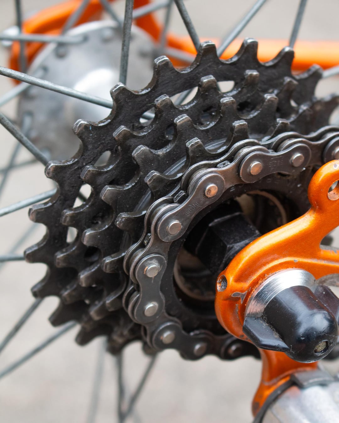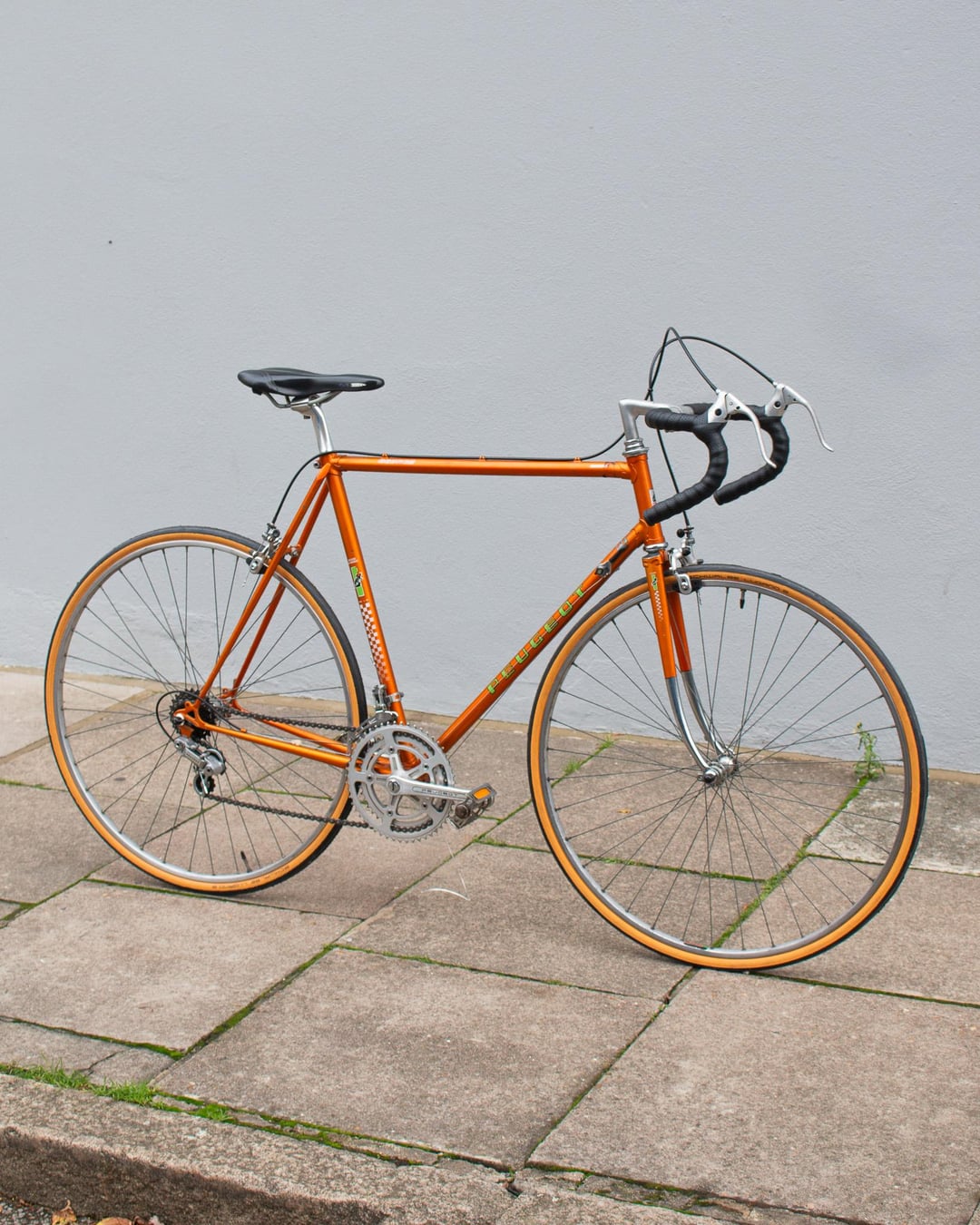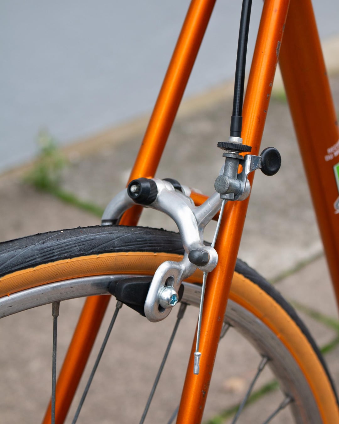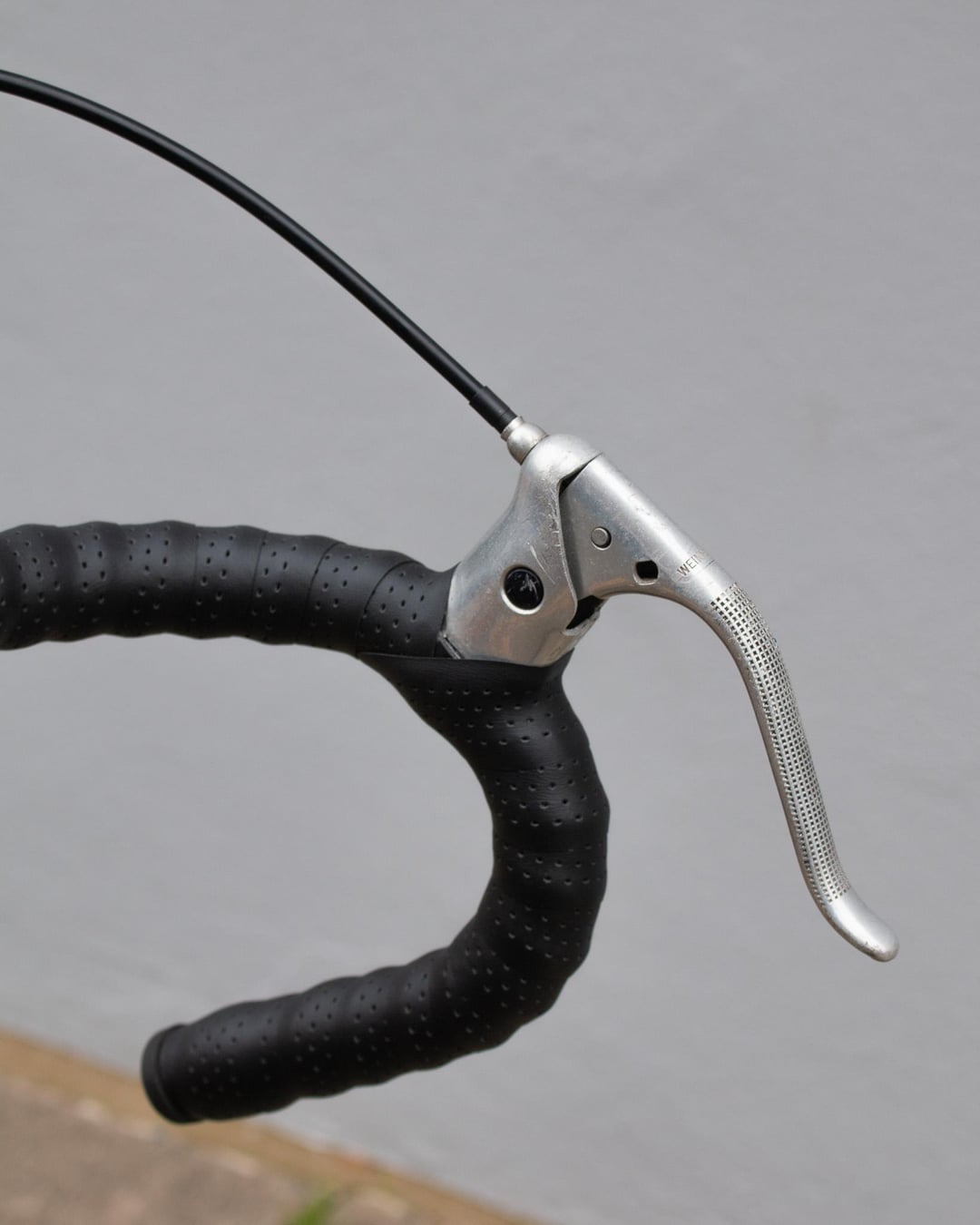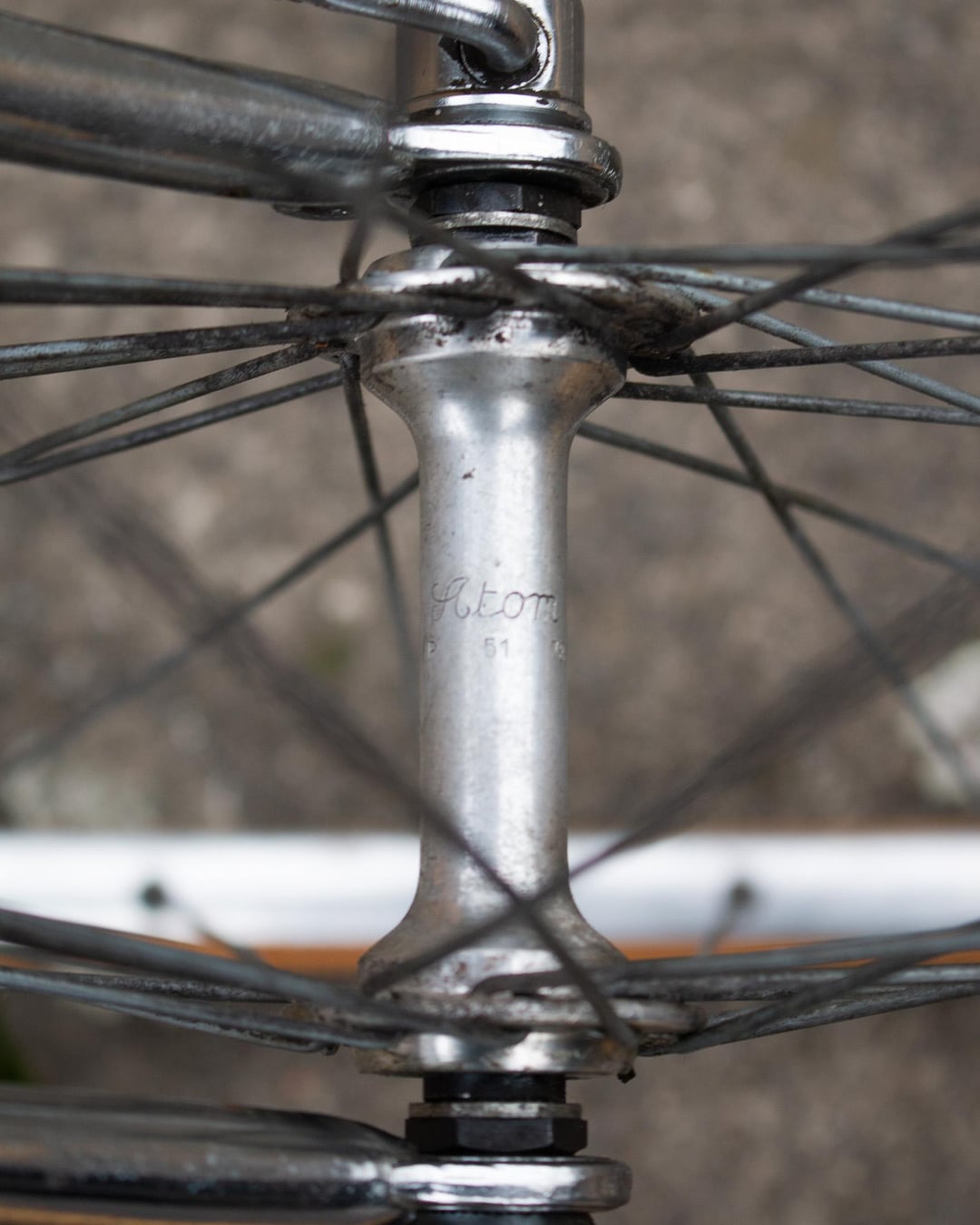 It features all the classic French components from that era, Simplex derailleurs, Peugeot crankset, Mavic rims on Axom hubs, Atax stem, Philipe handlebars, Stronglight headset and bottom bracket and Weinmann brakes. It even has original Sedis chain and Maillard freewheel. Seatpost, saddle and brake levers are not original.