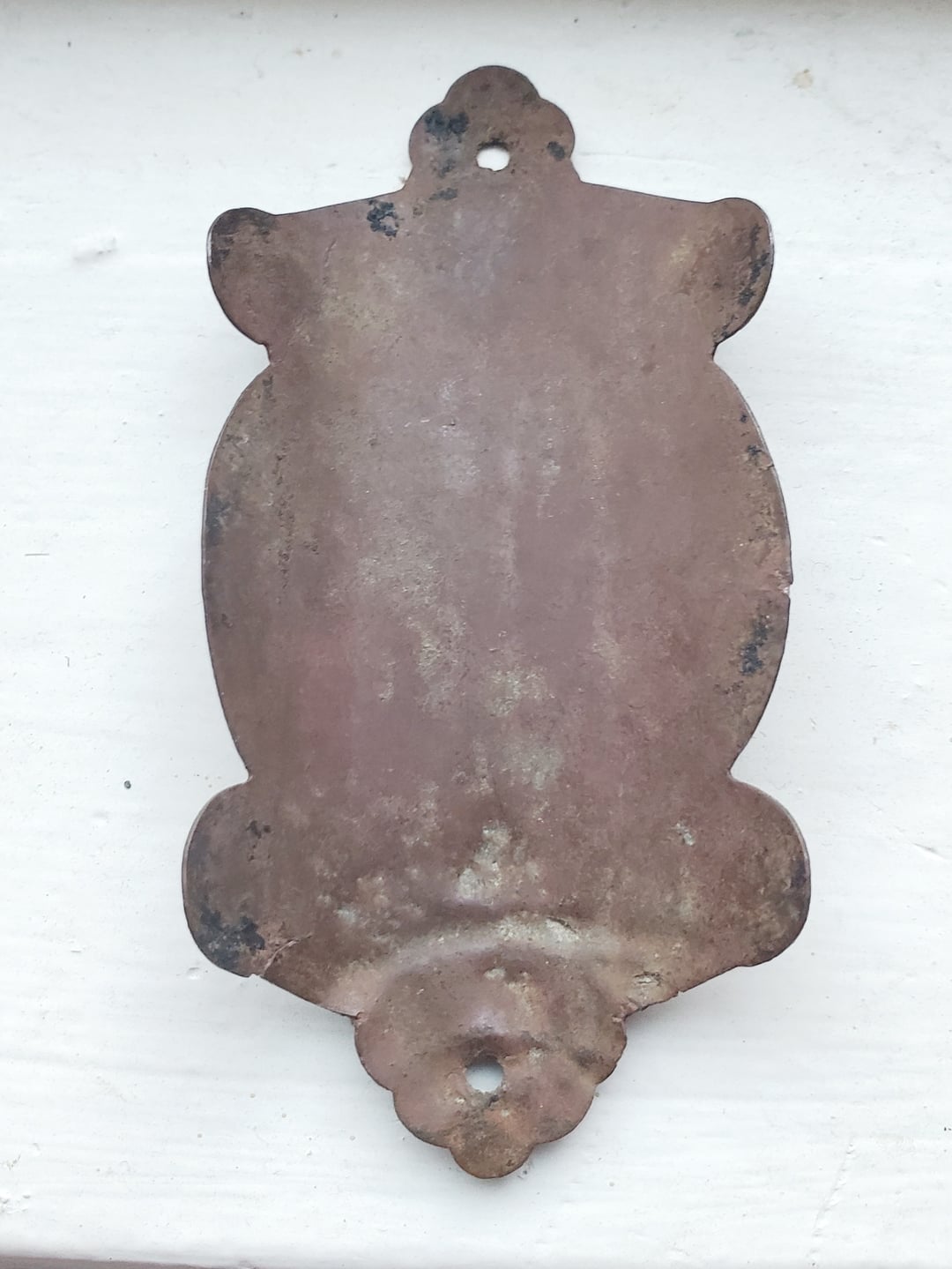 It could conceivably be some kind of architectural placard and not a bicycle headbadge, but I've not found any information on such an application either. And it really is exactly what an old bicycle headbadge would be — right size, right shape, right curvature, right mounting holes.
