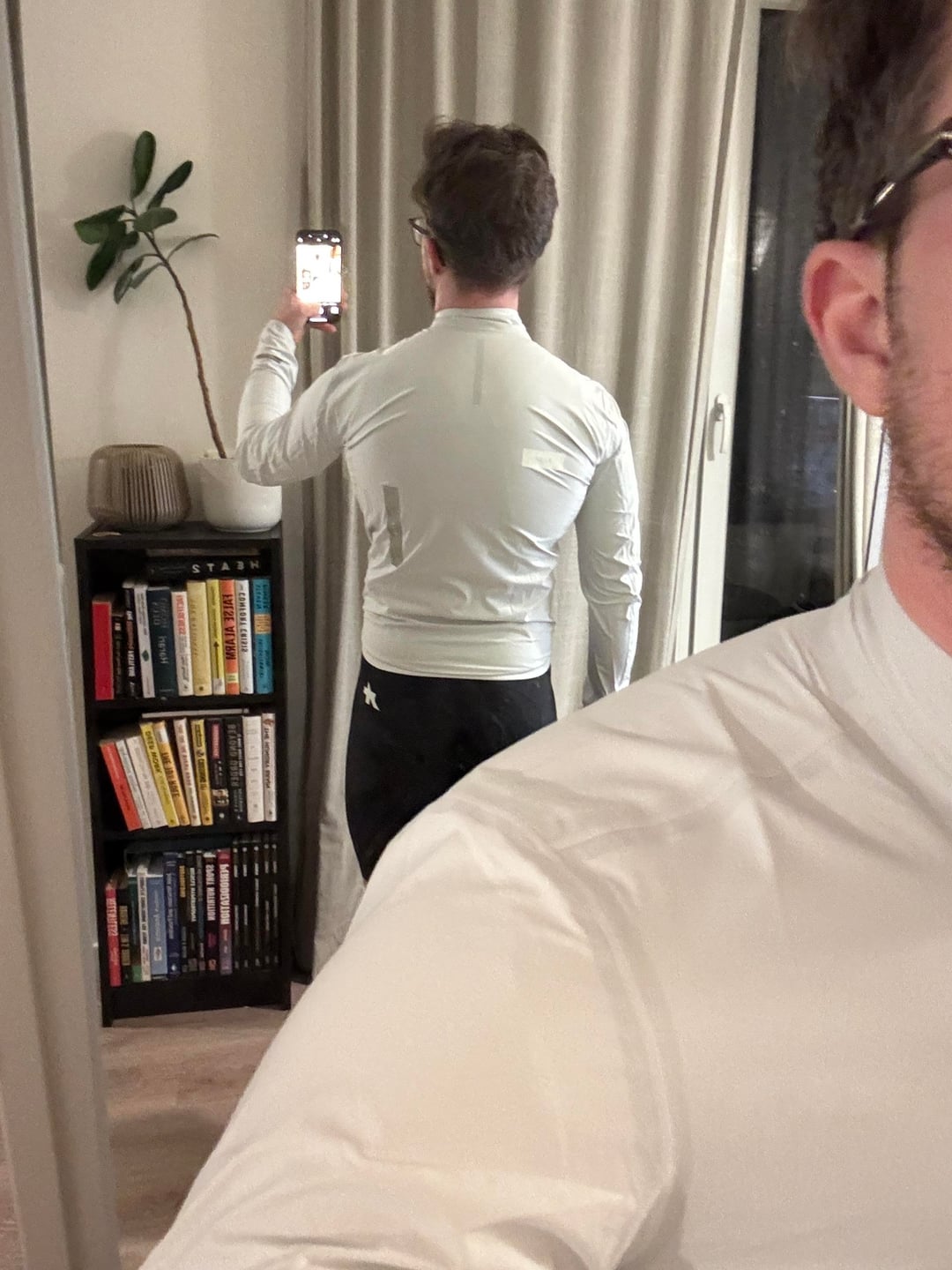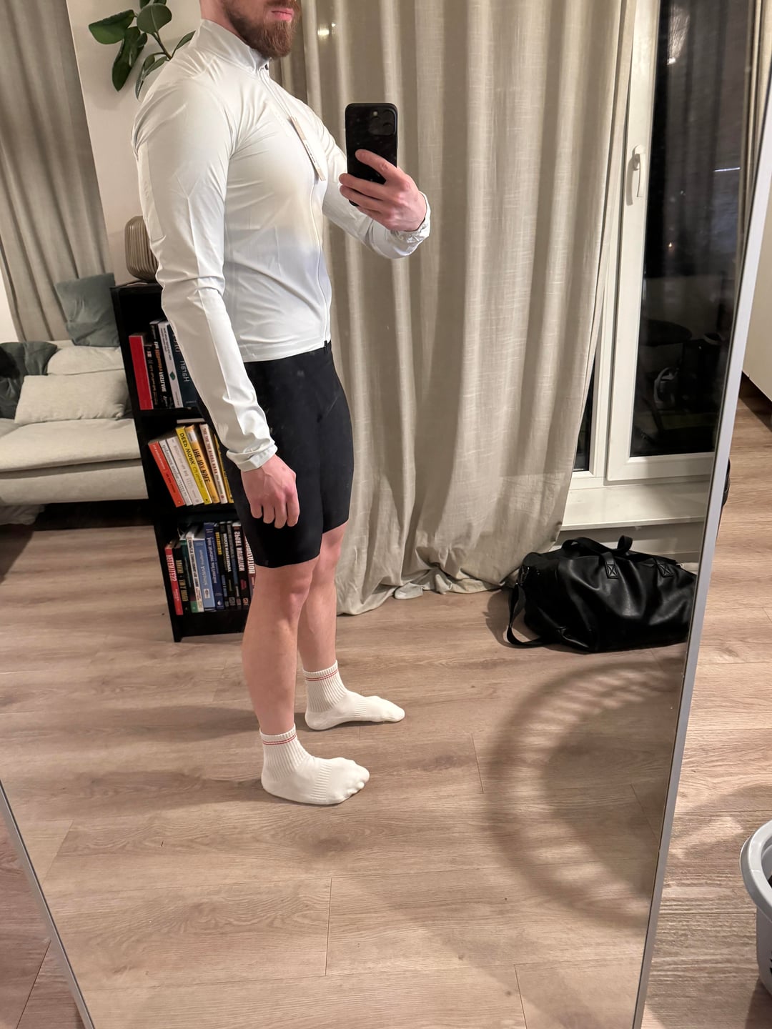 If I’m on the bike, it feels much better but still somewhat snug due to the material that doesn't ’stretch.