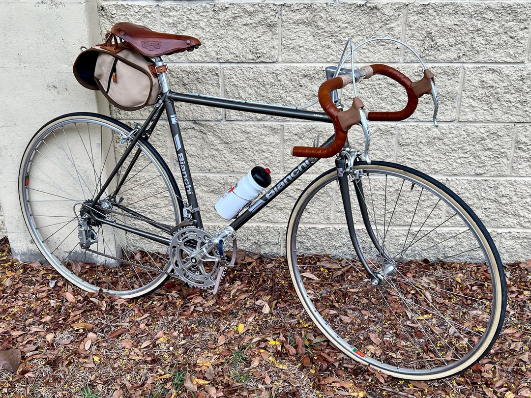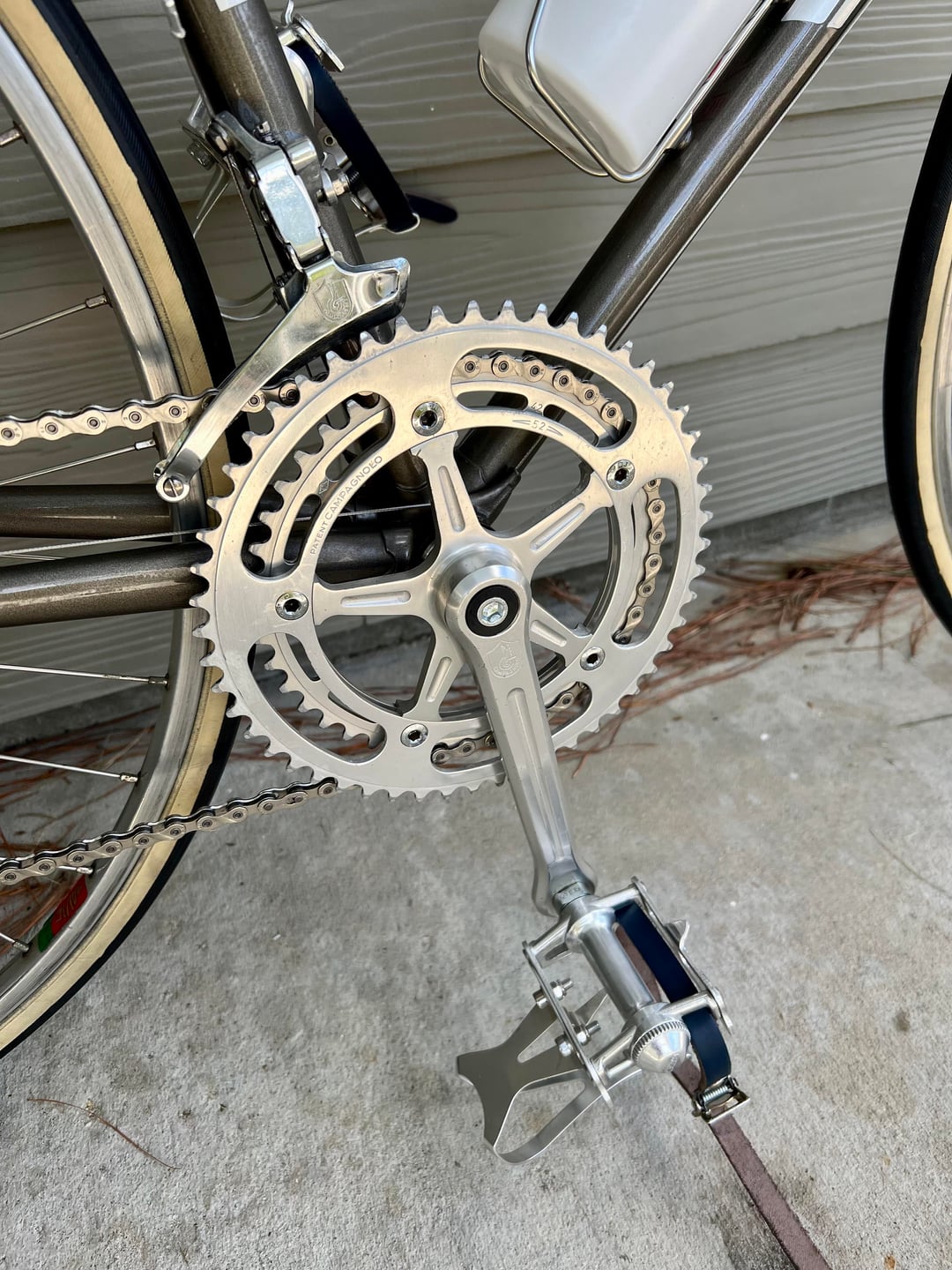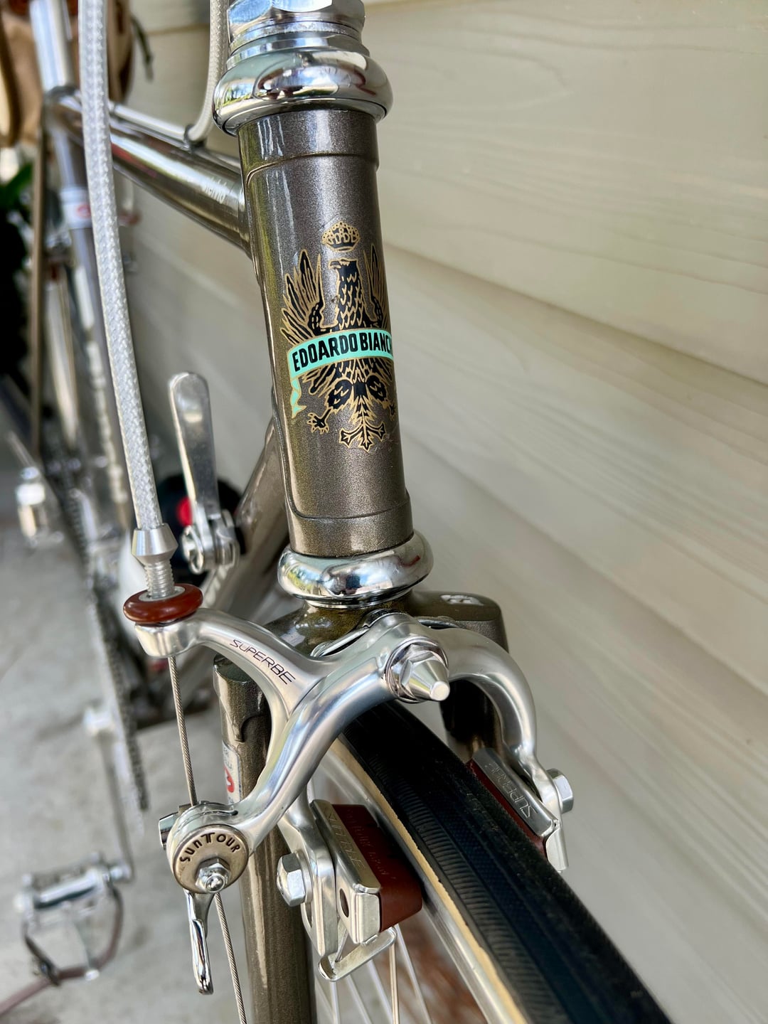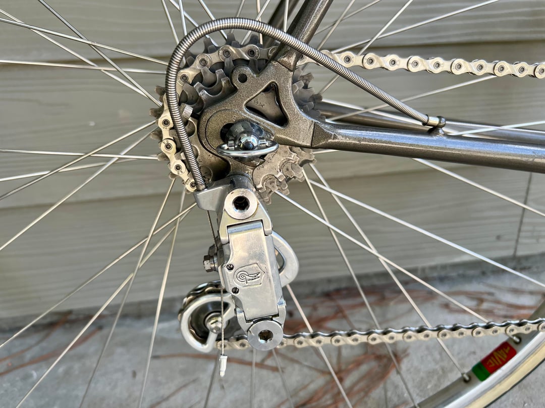 I bought it on eBay for $350, but it was in very good cosmetic condition and wholly original. The bearings were dry but I cleaned and repacked them and replaced the saddle, bottom bracket, crankset, headset, pedals, chain, and all the cables. The rims, tires, and tubes were in good condition but I cleaned the spokes and rims with fine steel wool and Simichrome polish.