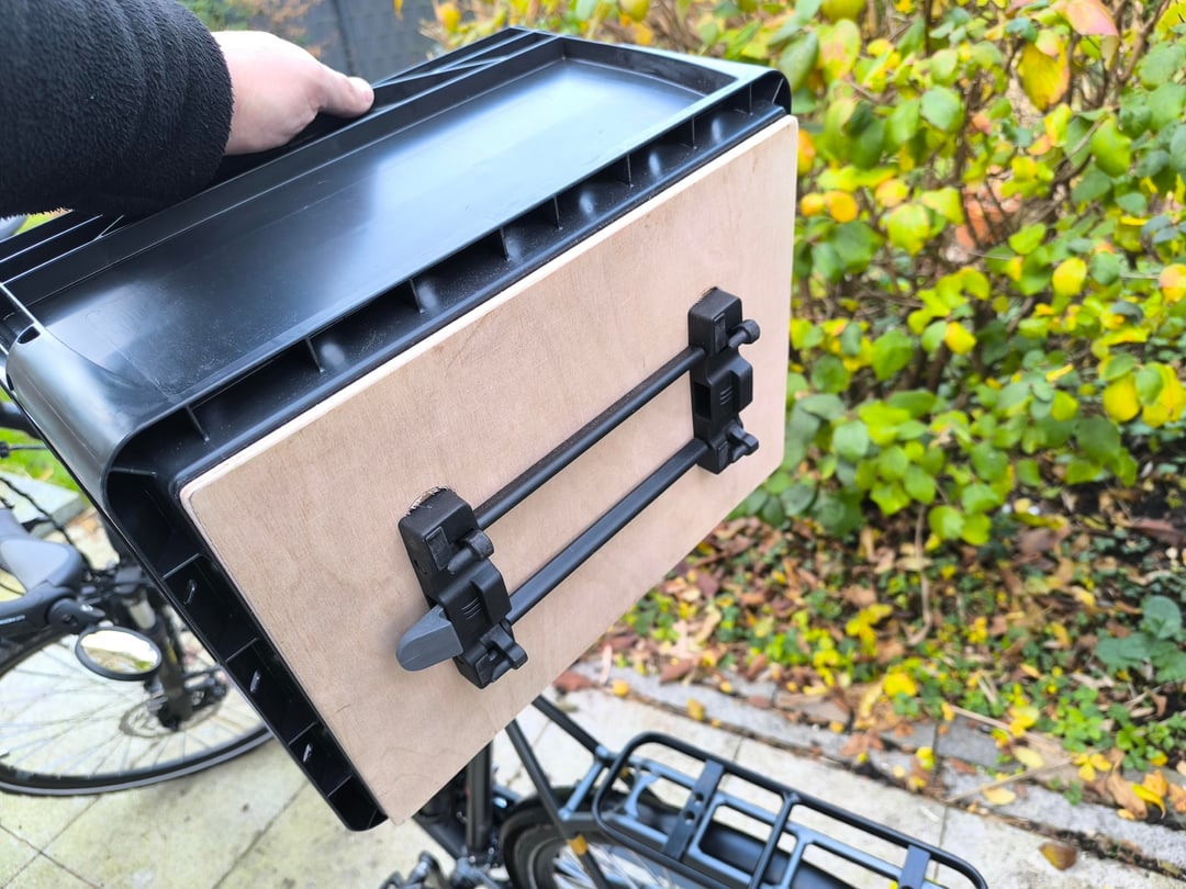 Habe es ähnlich mit einer Postkiste auf der Front. Irgendwie die Angenehmste Transportmöglichkeit auf meinem Daily. Man ist nicht abhängig von irgendwelchen Klick-Systemen, kann bevorzugte Taschen oder Rucksäcke weiter-verwenden und sperriges lässt sich auch Mal rein stellen.