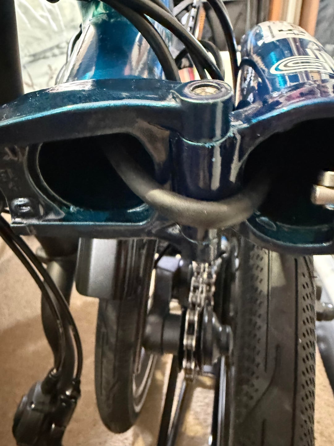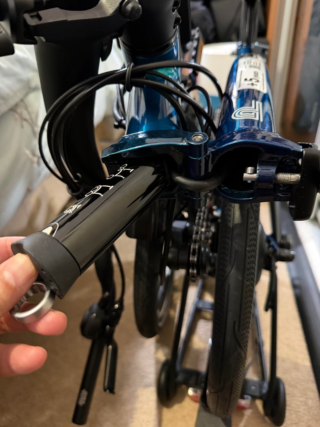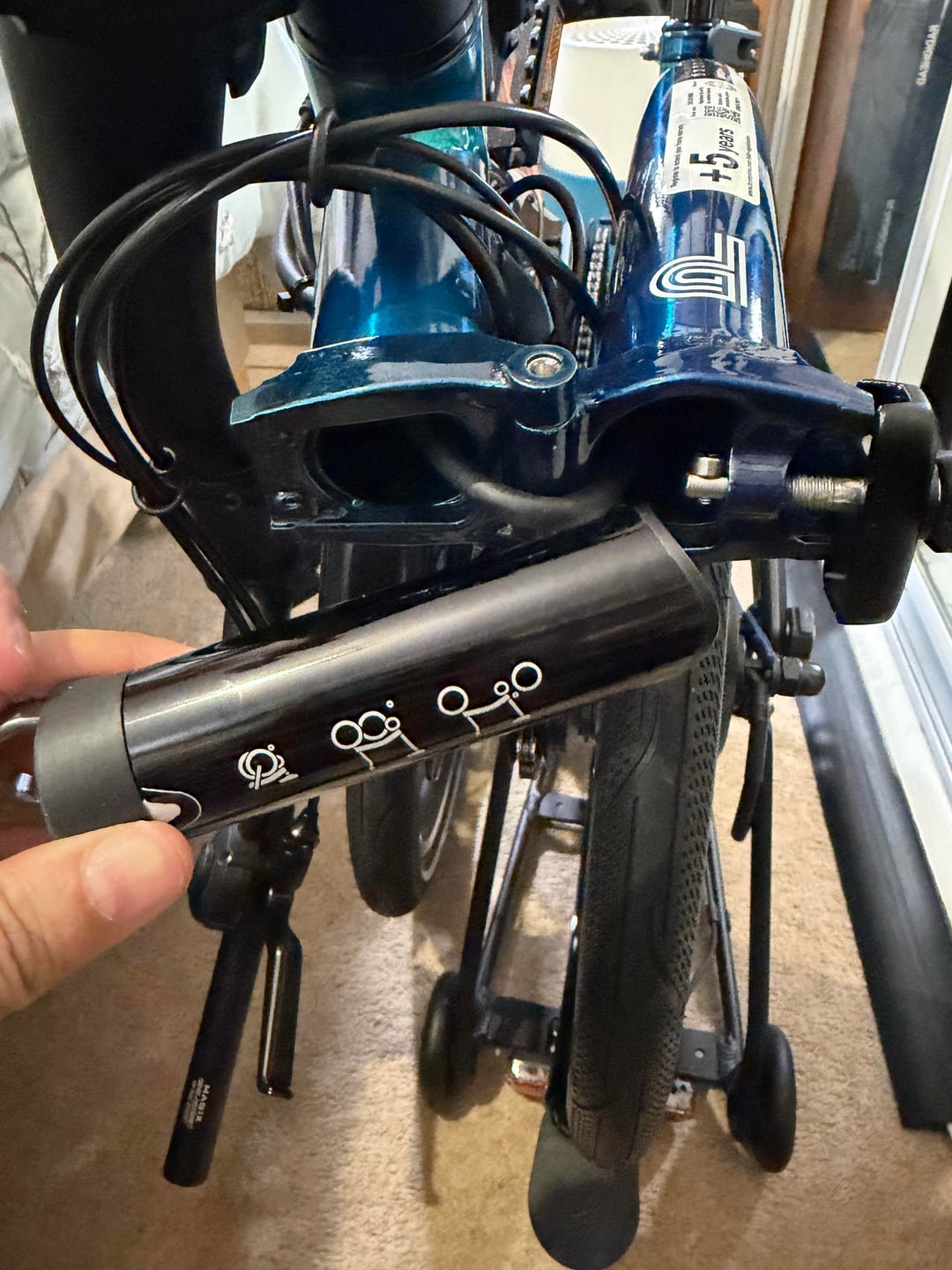 However while i was fitting the saddle I remembered I’d ordered the Brompton toolkit with my initial order. I went to install it in the frame but it wouldn’t go in. There is now a thick cable being routed internally so the cavity where the toolkit would normally go is partially blocked by this cable.