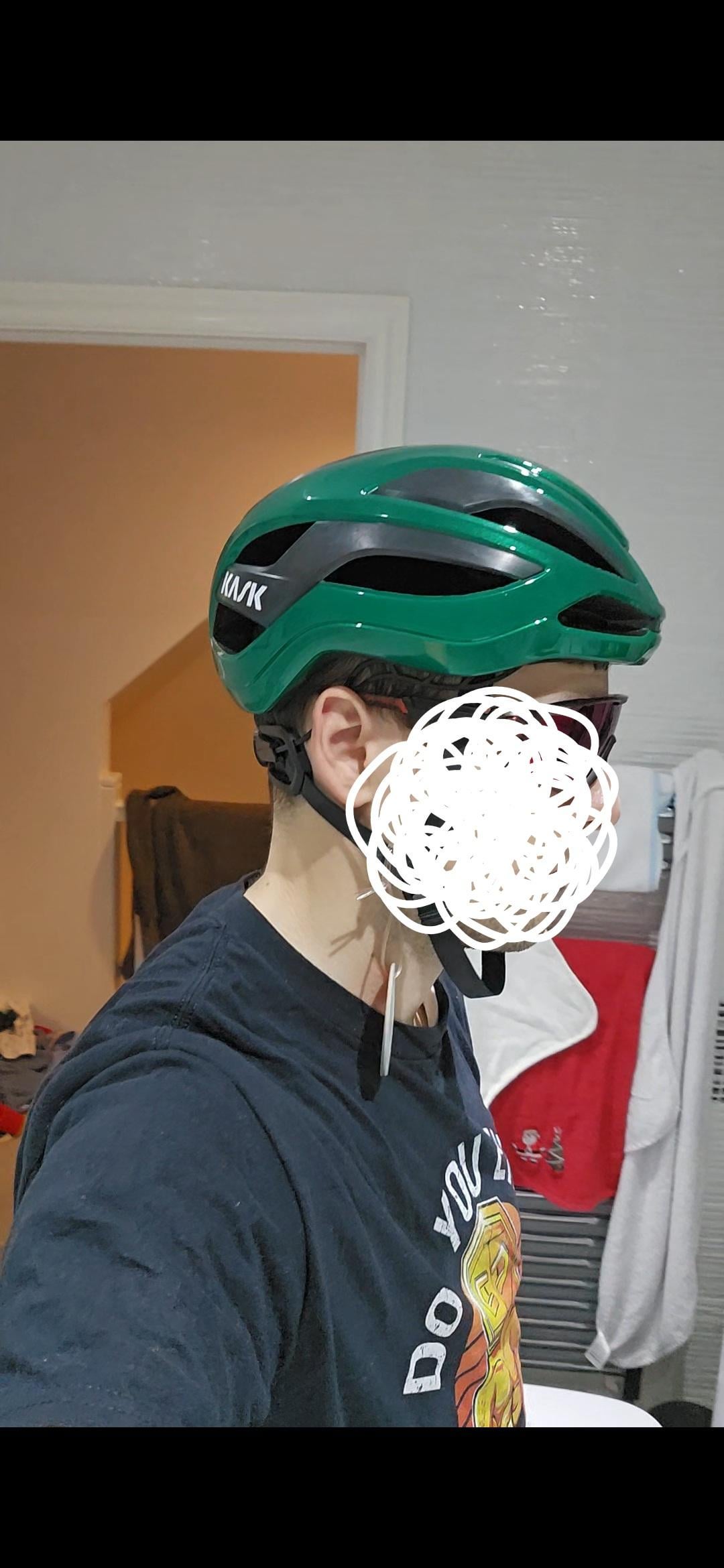 Valegro – looks quite mushroomy, and it's a tiny bit bigger on my head than the rest, but nothing major. Retention arms best placed out of all helmets. Really like the colour and design