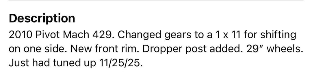 The Pivot MACH 429 ($650) is sweet, and I love the look and drivetrain upgrade, but it seems like it might be too big for me. I’m 5ft 8in and the seller said it is a med/large frame with 30in stand over height.