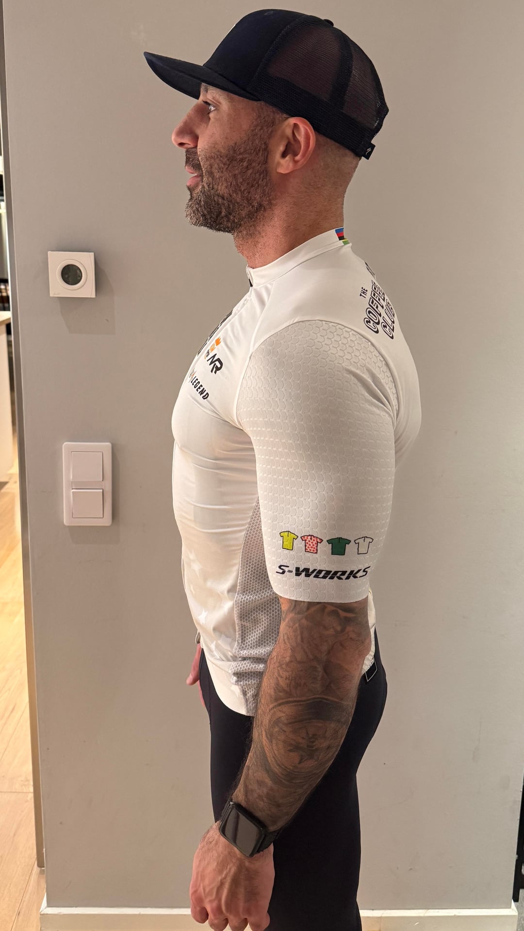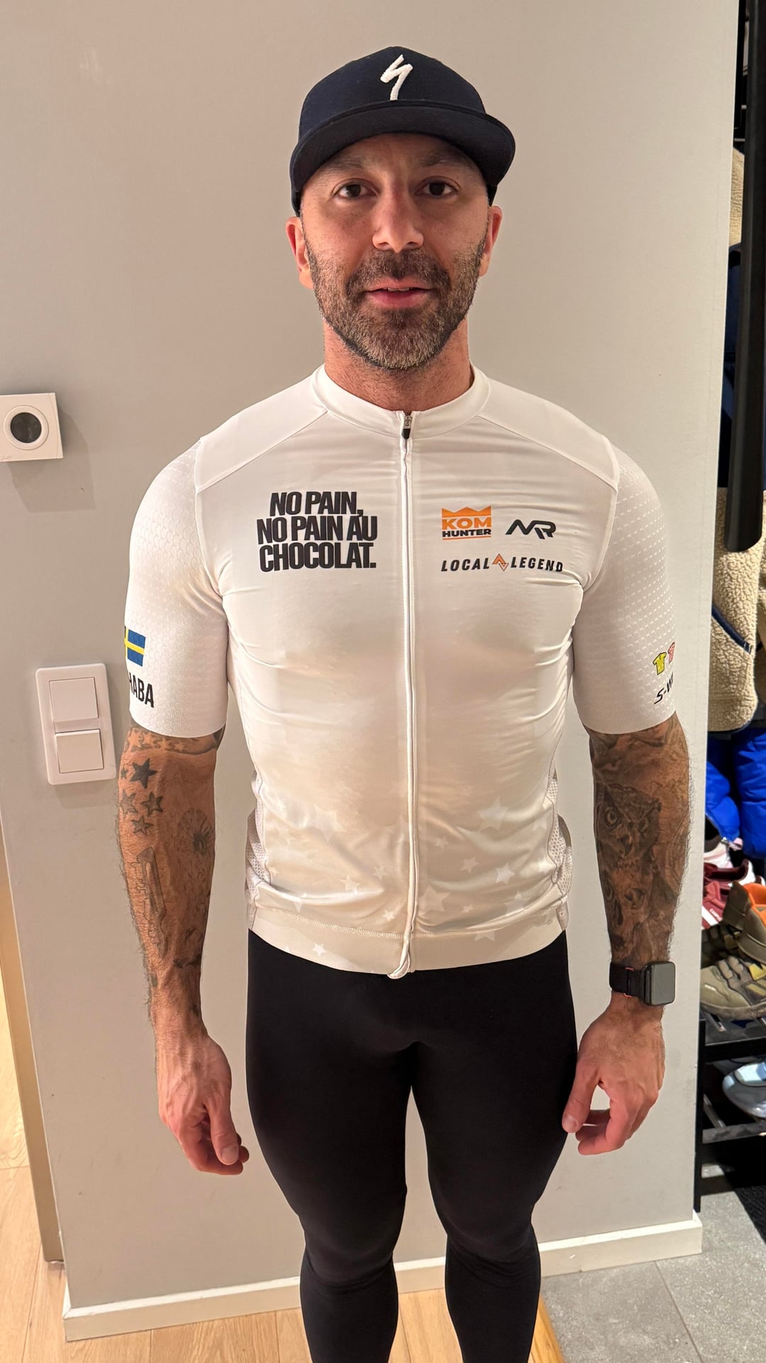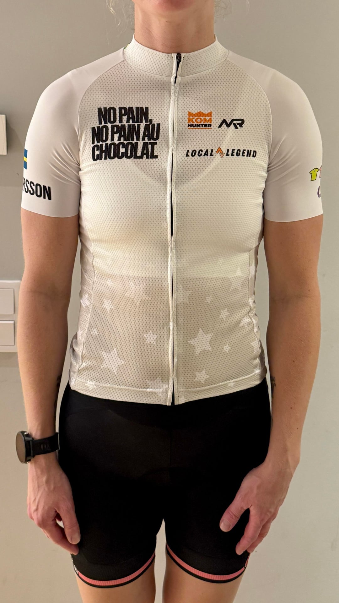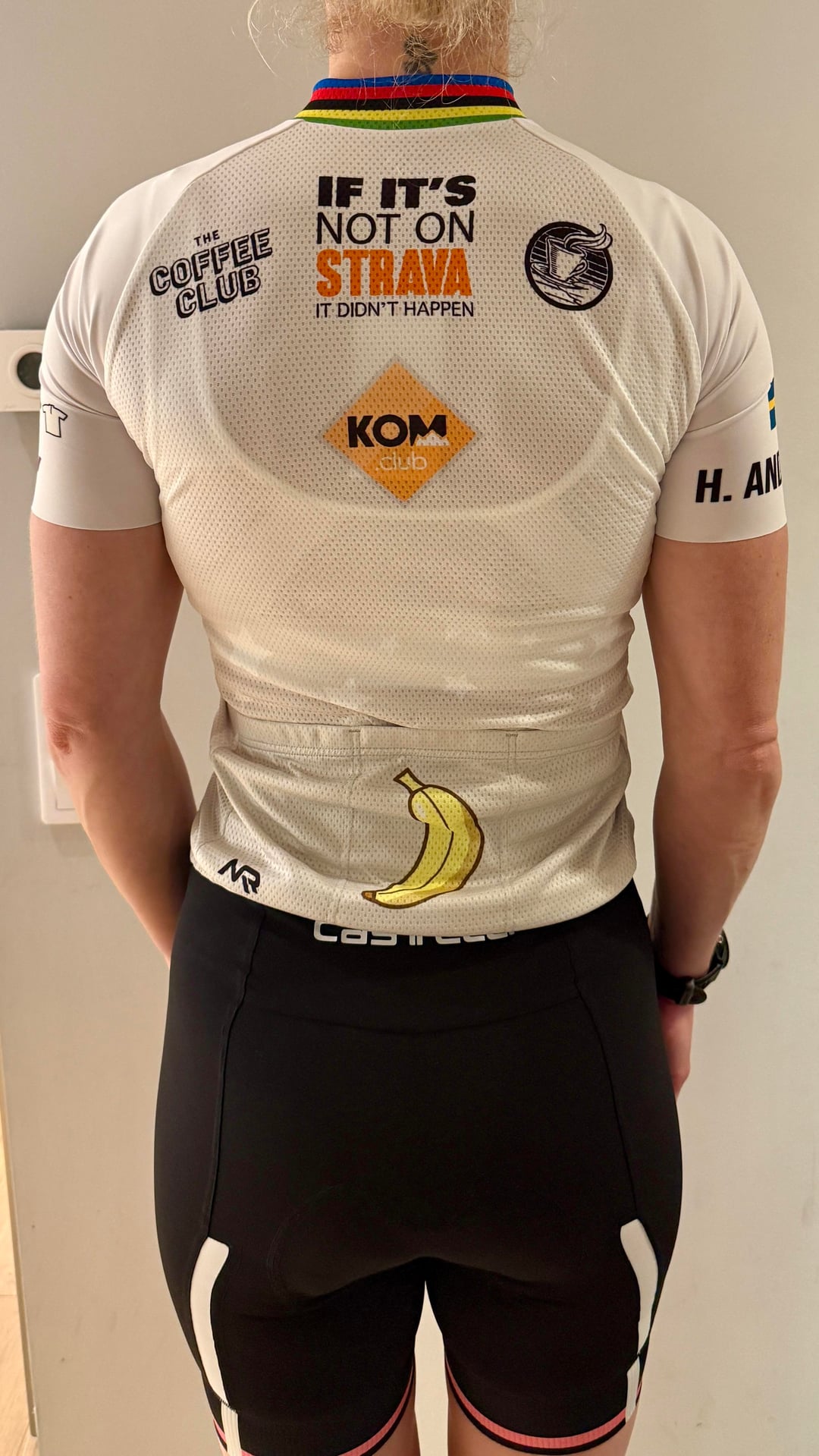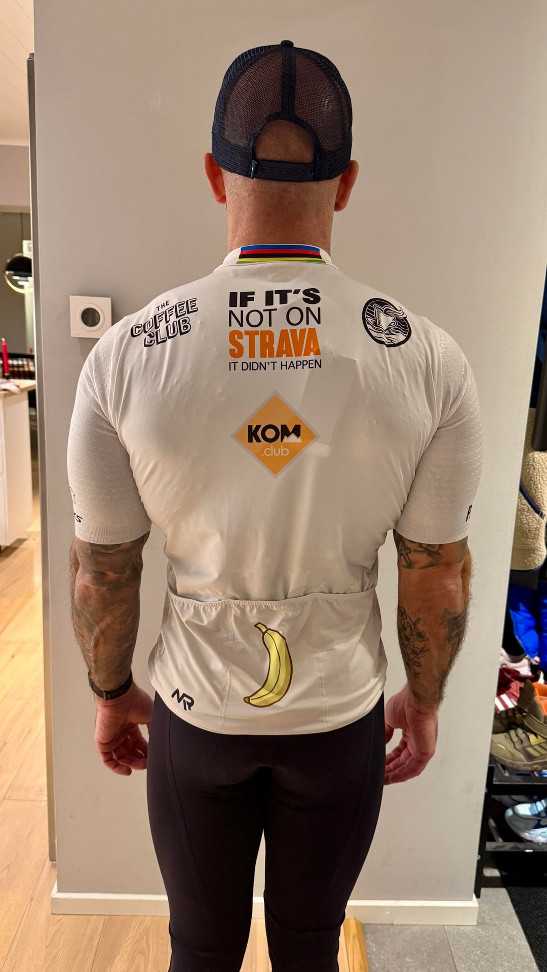 The idea was to design a funny and humorous cycling jersey for myself and my girlfriend. We wanted to mess around with cycling quotes, Strava KOMs etc.