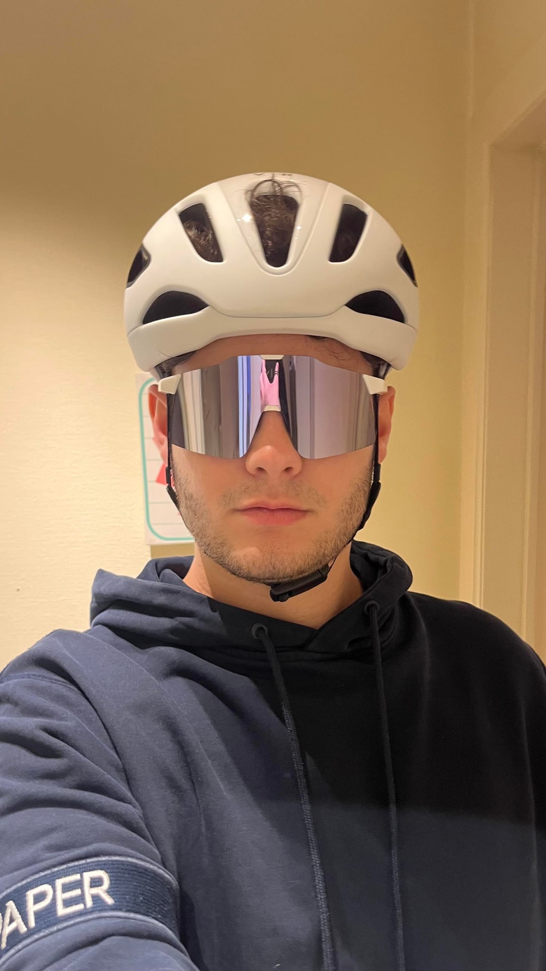 I feel like the helmet itself is a good size. My finger is just too thick to fit in between the helmet and the side of my head for example. The helmet feels solid and steady on my head. So the actual shell of the helmet fit’s fine.