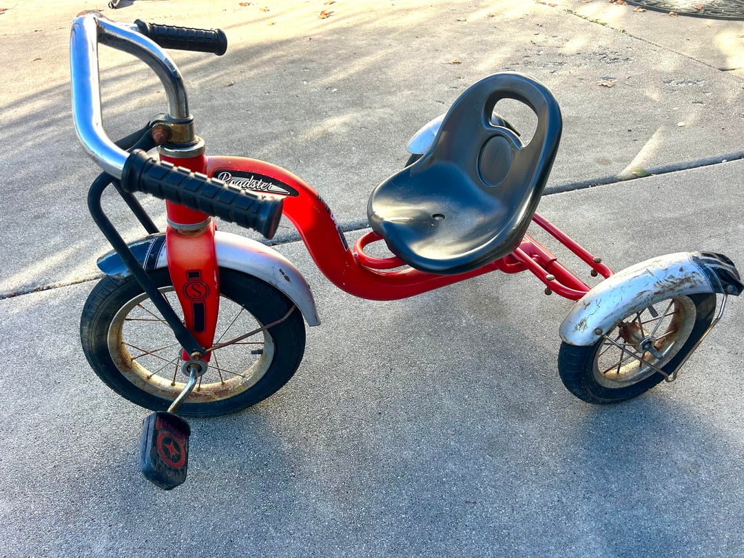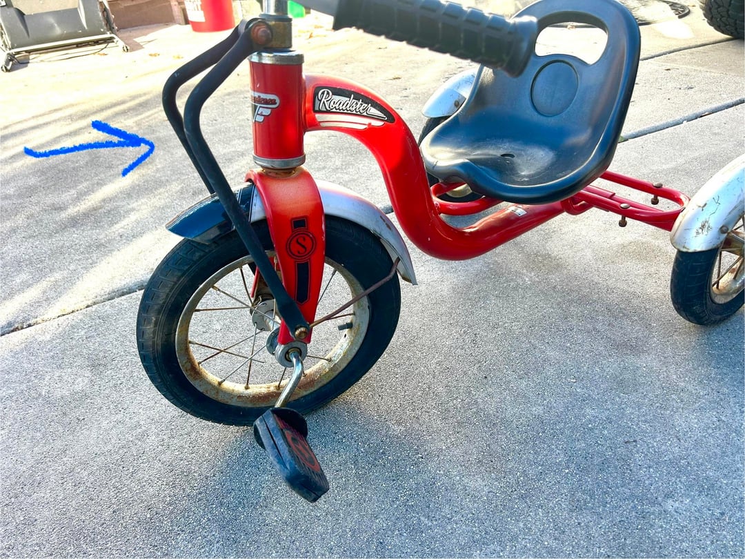 My wife snagged this older Schwinn Roadster tricycle several months ago and would like me to do some restoration work on it for our grandson. I have been trying to determine the age of it with the serial number but based on some physical characteristics I am thinking perhaps it was not made here in the U.S. but maybe overseas for Schwinn. I have been searching through photos online and none of them have these weird bars up front like ours has and it doesn’t have the other slimmer body tubes/bars running along the frame like all the others have. Maybe our trike is from some random design year they abandoned since it didn’t look as classic/cool? Or it’s a bizarrely attempted replica for many years back? Any advice or expertise would be greatly appreciated! Here are photos of our tricycle for your reference. Thank you!